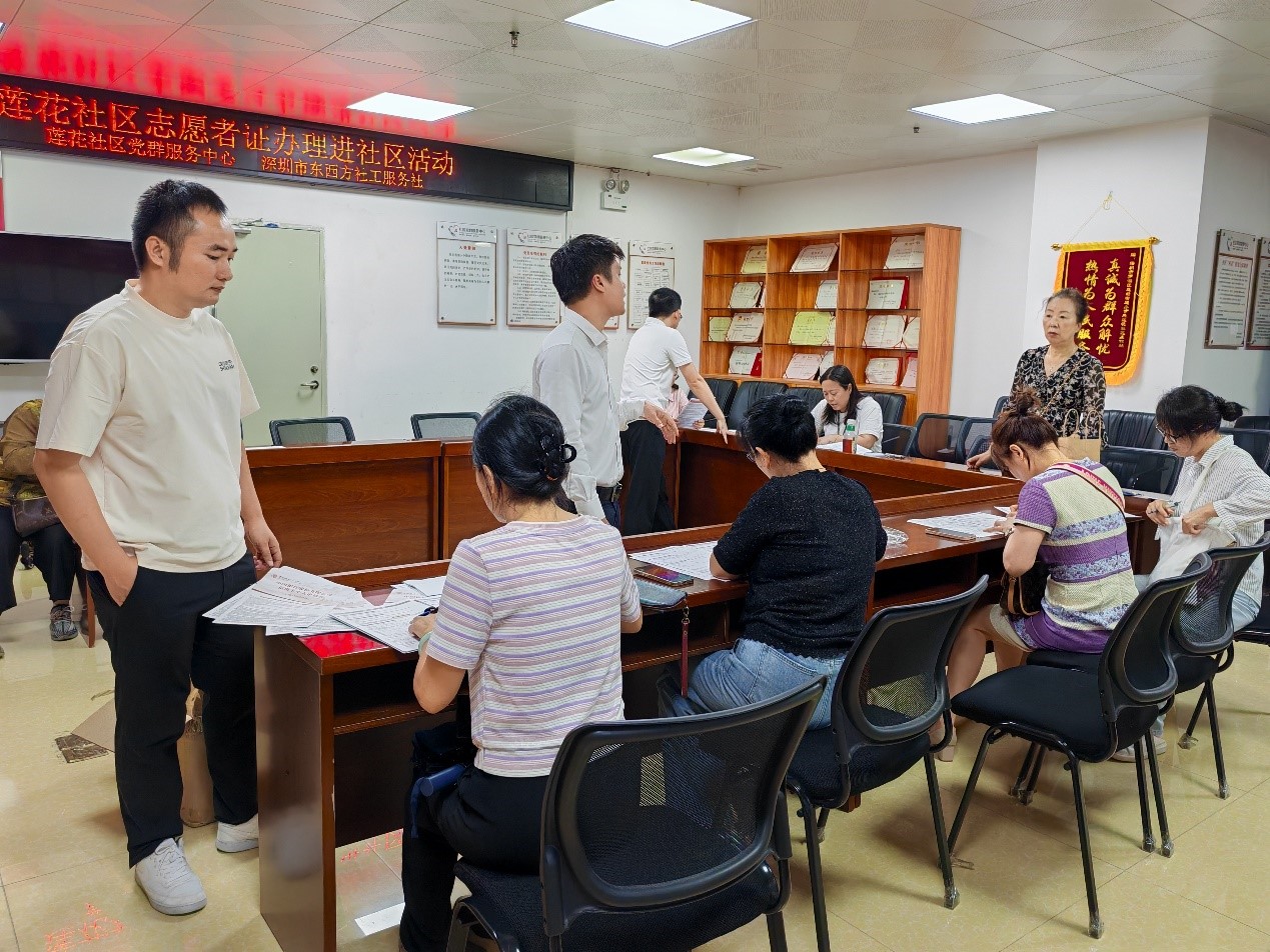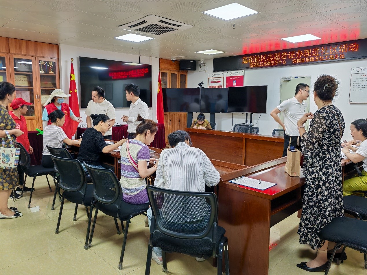 罗湖家园网讯:为大力弘扬“奉献、友爱、互助、进步”的志愿精神,吸引更多居民投身志愿服务,2025年6月6日上午,莲花社区联合深圳市东西方社工服务社、中国银行,在新时代文明实践站开展“上门办”志愿者证便民服务活动,为社区34位居民提供了便捷高效的办证服务。