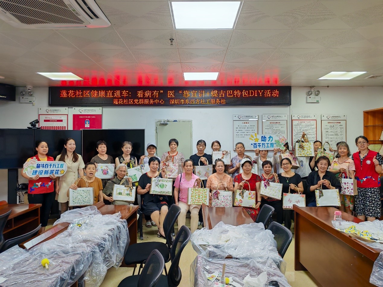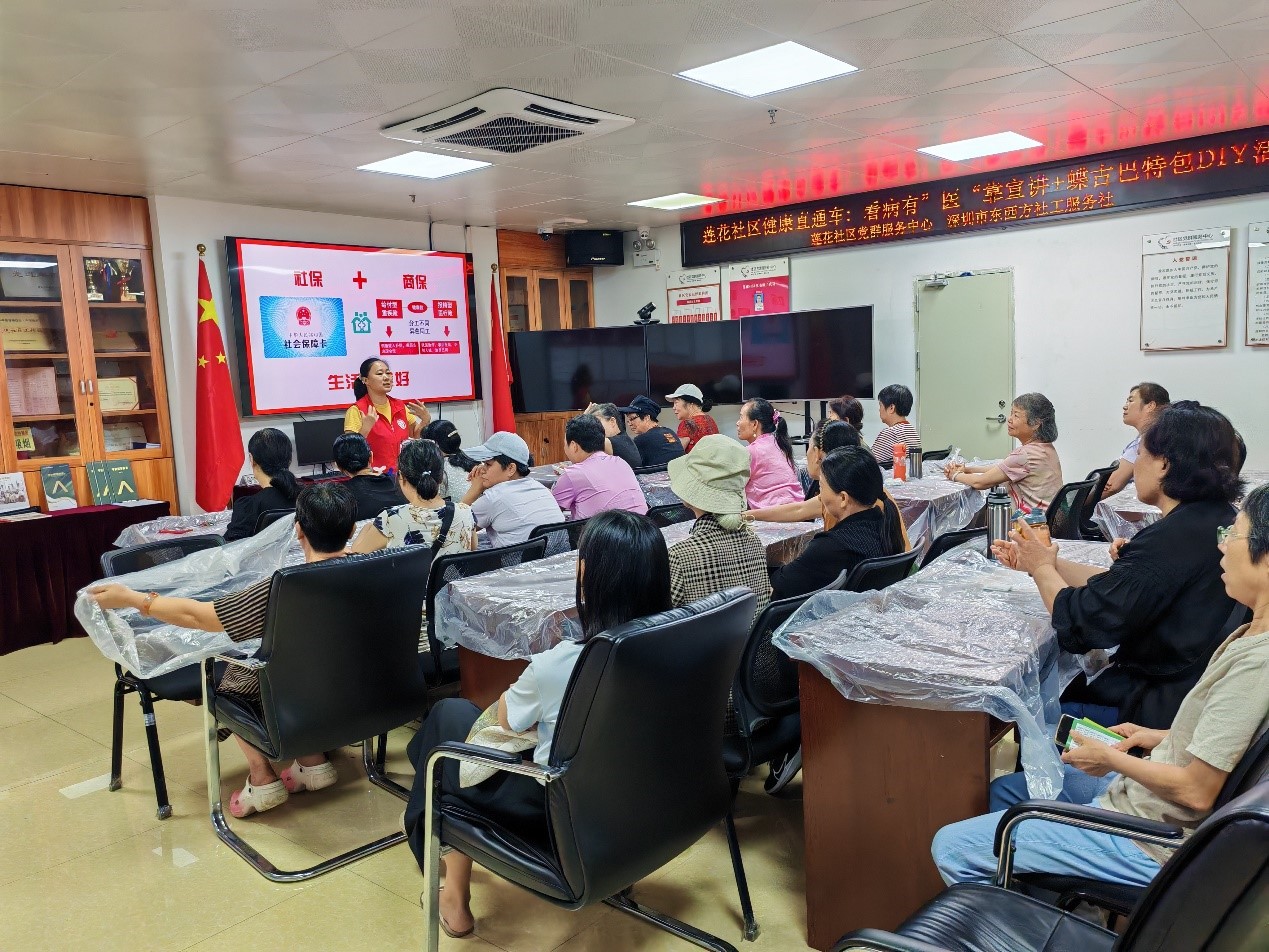 罗湖家园网讯:为进一步提升社区居民对医保政策的知晓率与认知度,2025年6月20日上午,莲花社区联合深圳市东西方社工服务社、中国平安,共同举办了“三重医保有‘医’靠,医疗救助‘零’距离”政策宣传活动,同时巧妙融入蝶古巴特手提包制作环节,为居民呈上一场知识与趣味交织的盛宴。