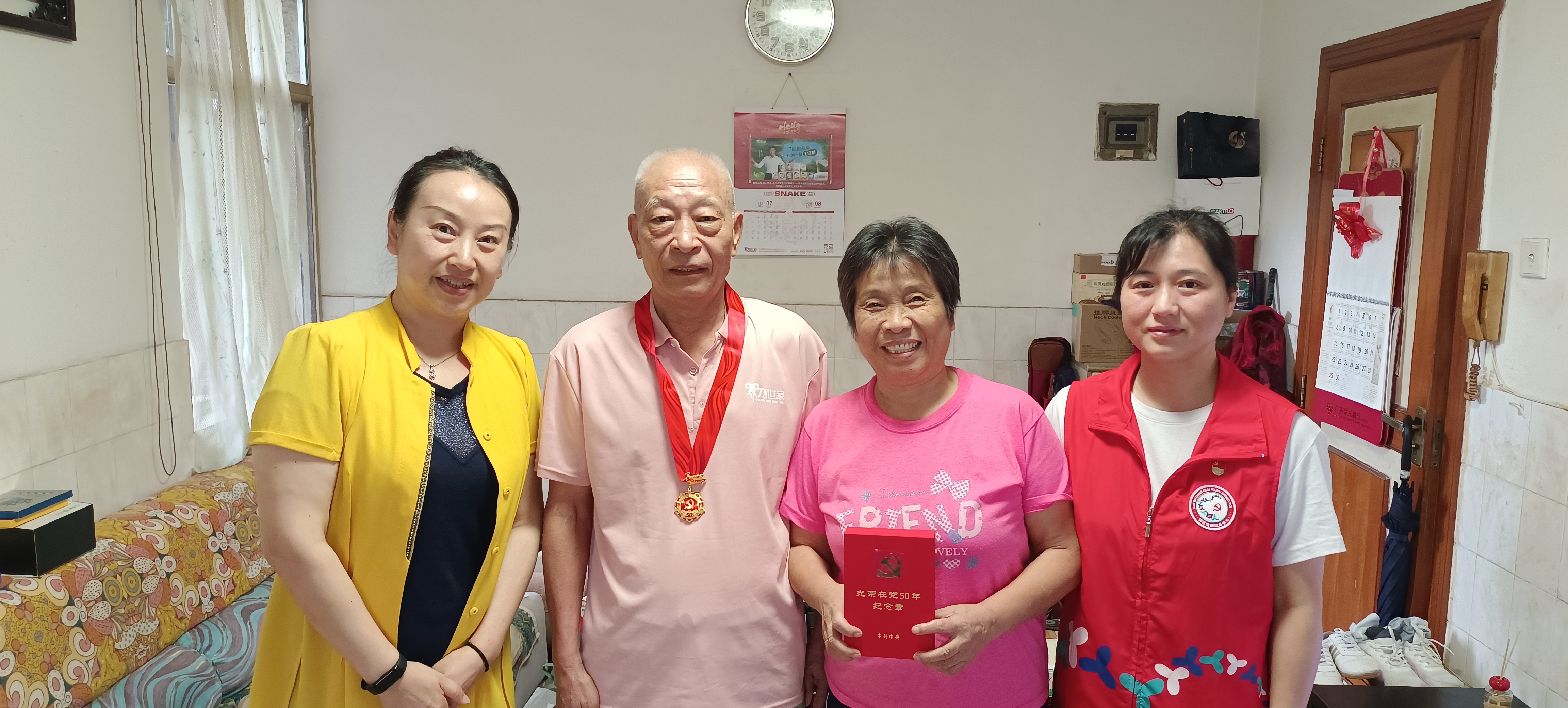 为庆祝中国共产党成立104周年,进一步增强党组织的凝聚力和战斗力,2025年6月30日下午,莲花社区党委组织开展“七一”走访慰问和“光荣在党50年”纪念章颁发工作。