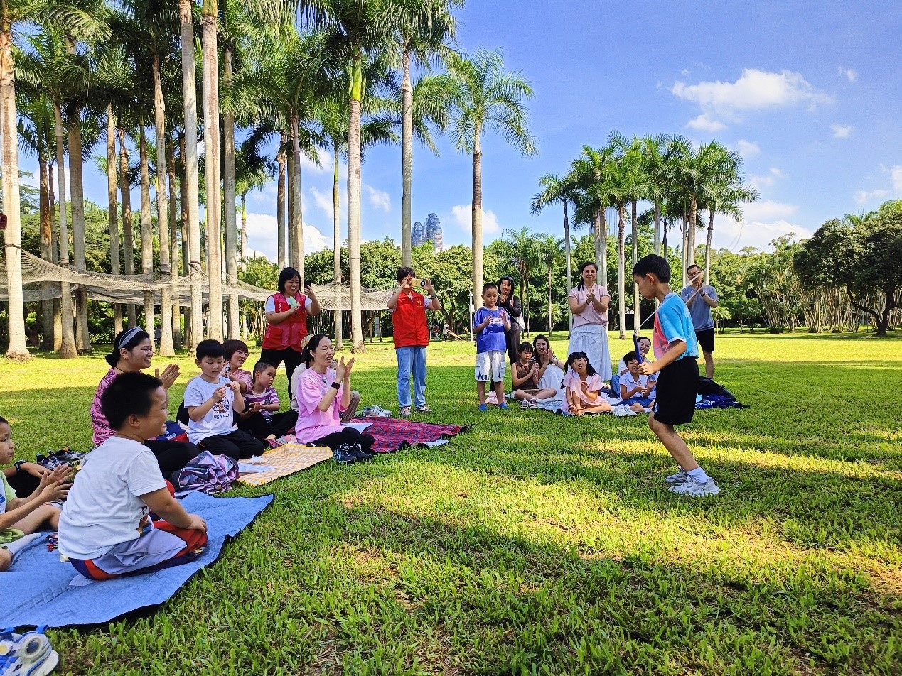 罗湖家园网讯:为弘扬中华优秀传统文化,全面总结第二学期“国学亲子班”成果,2025年7月6日上午,莲花社区携手深圳市东西方社工服务社、至善国学服务队,在东湖公园棕榈园举办了以“信德润心·礼承孝悌”为主题的散学礼。