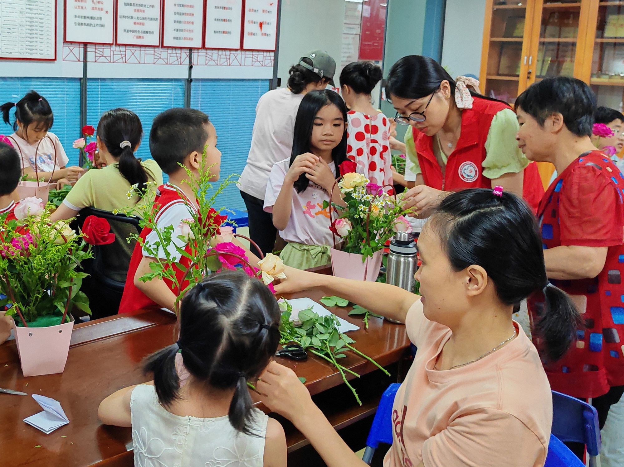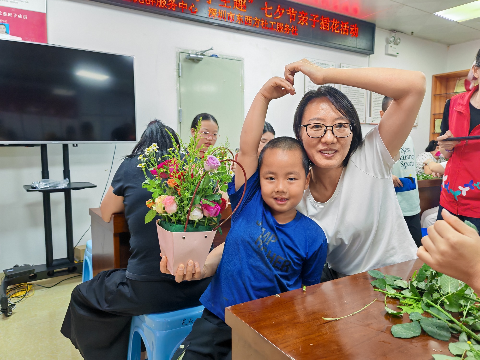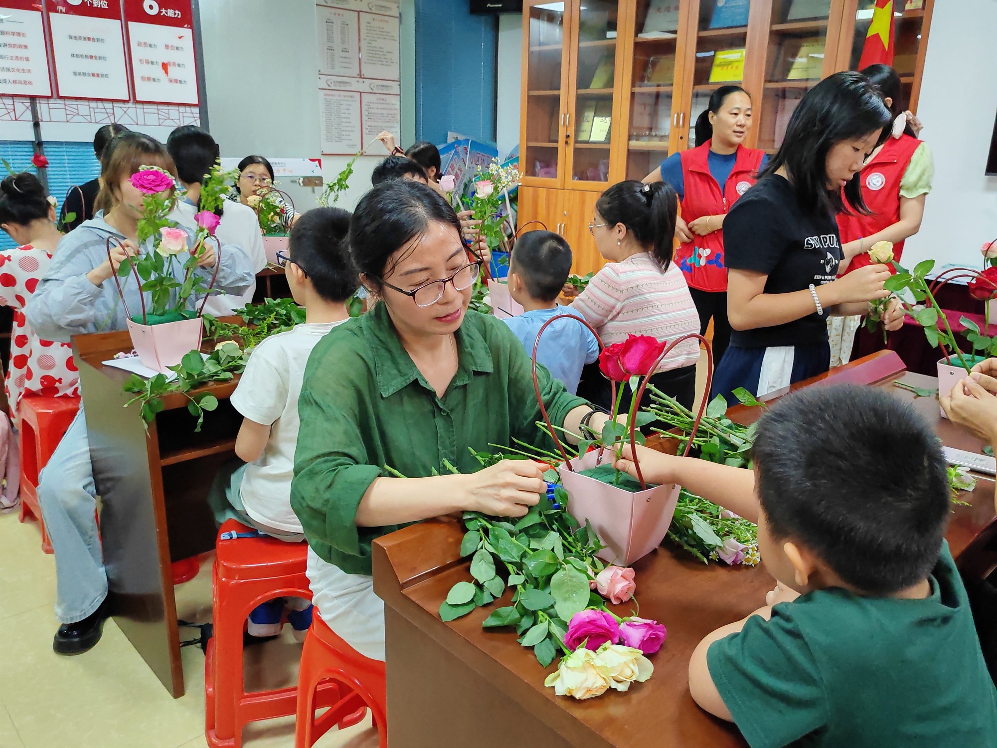 莲塘街道莲花社区开展“花语传情,巧手生趣”七夕节亲子插花活动