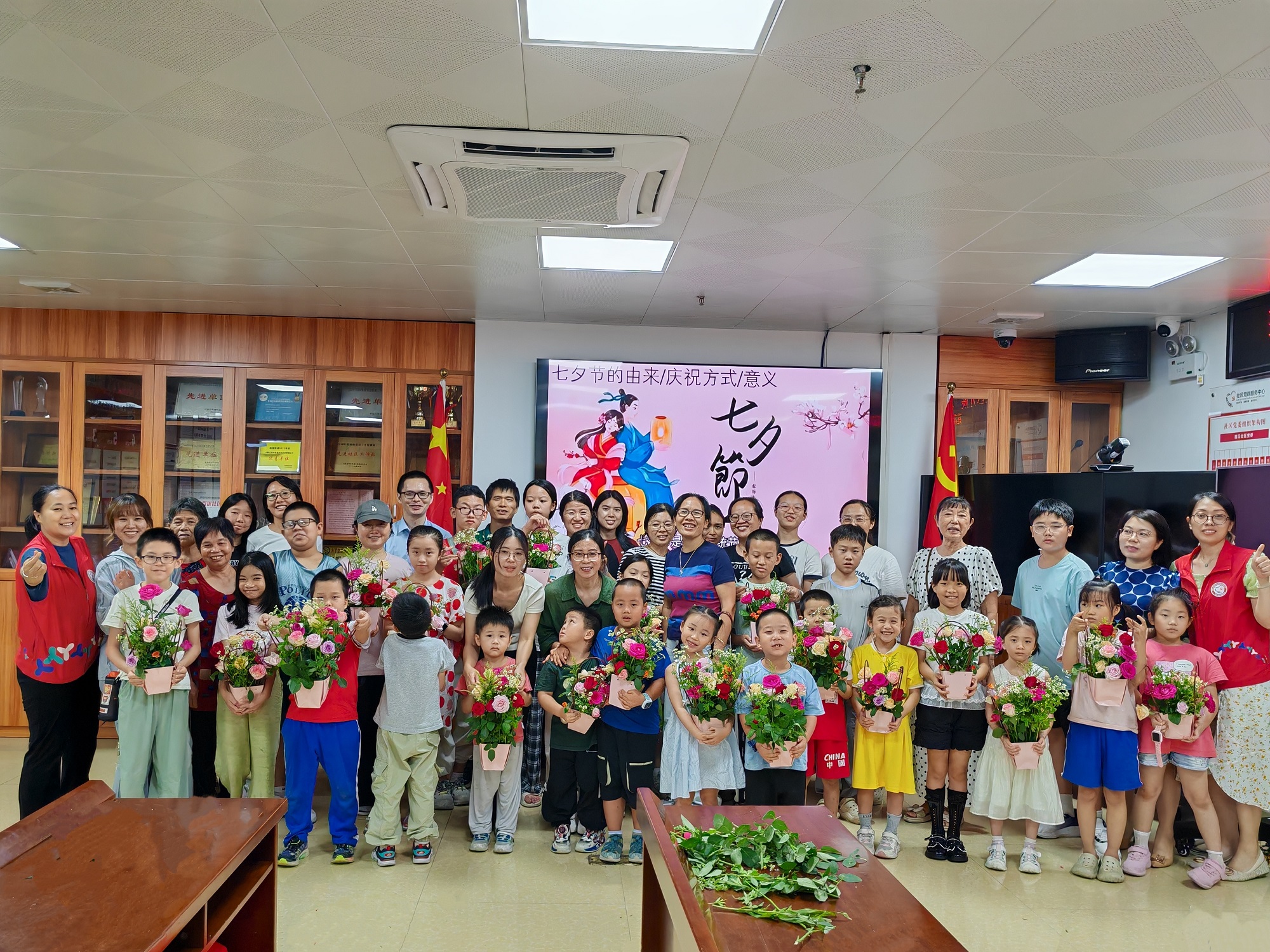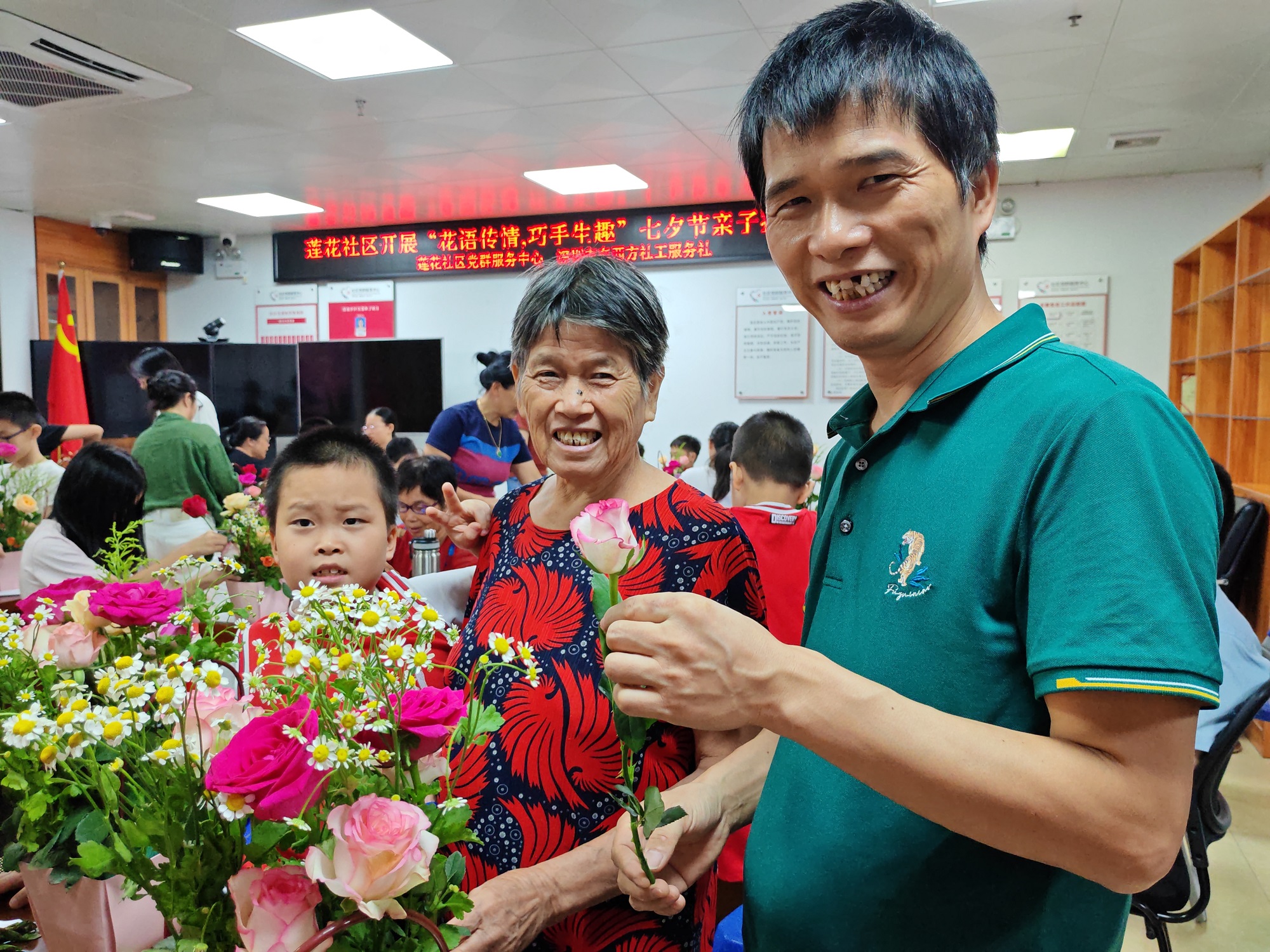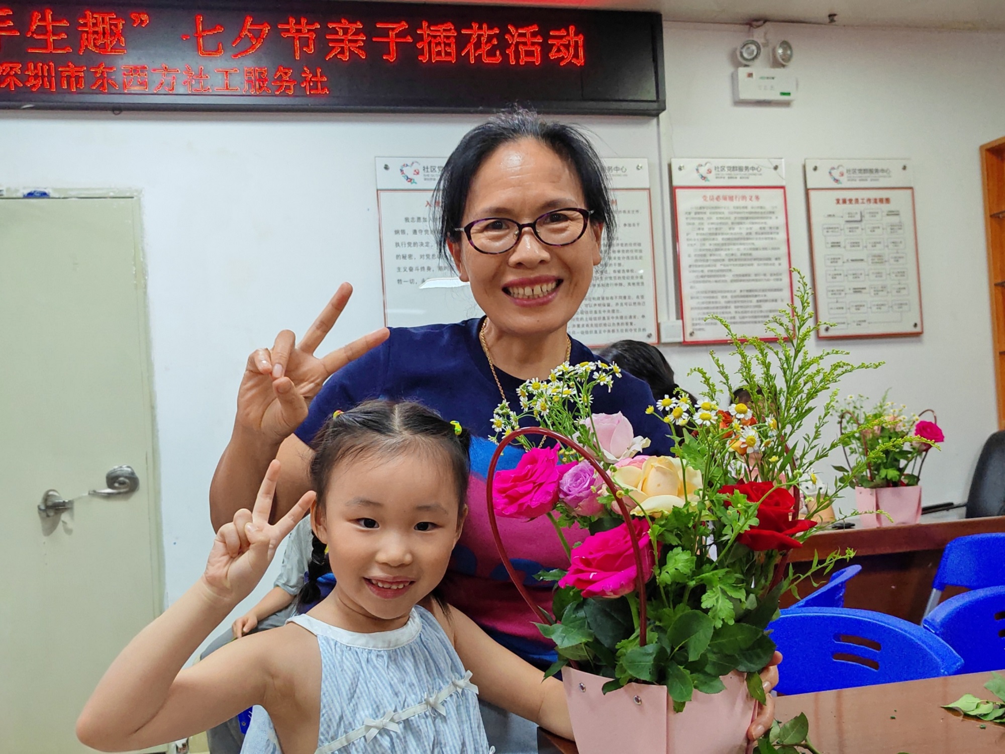 莲塘街道莲花社区开展“花语传情,巧手生趣”七夕节亲子插花活动