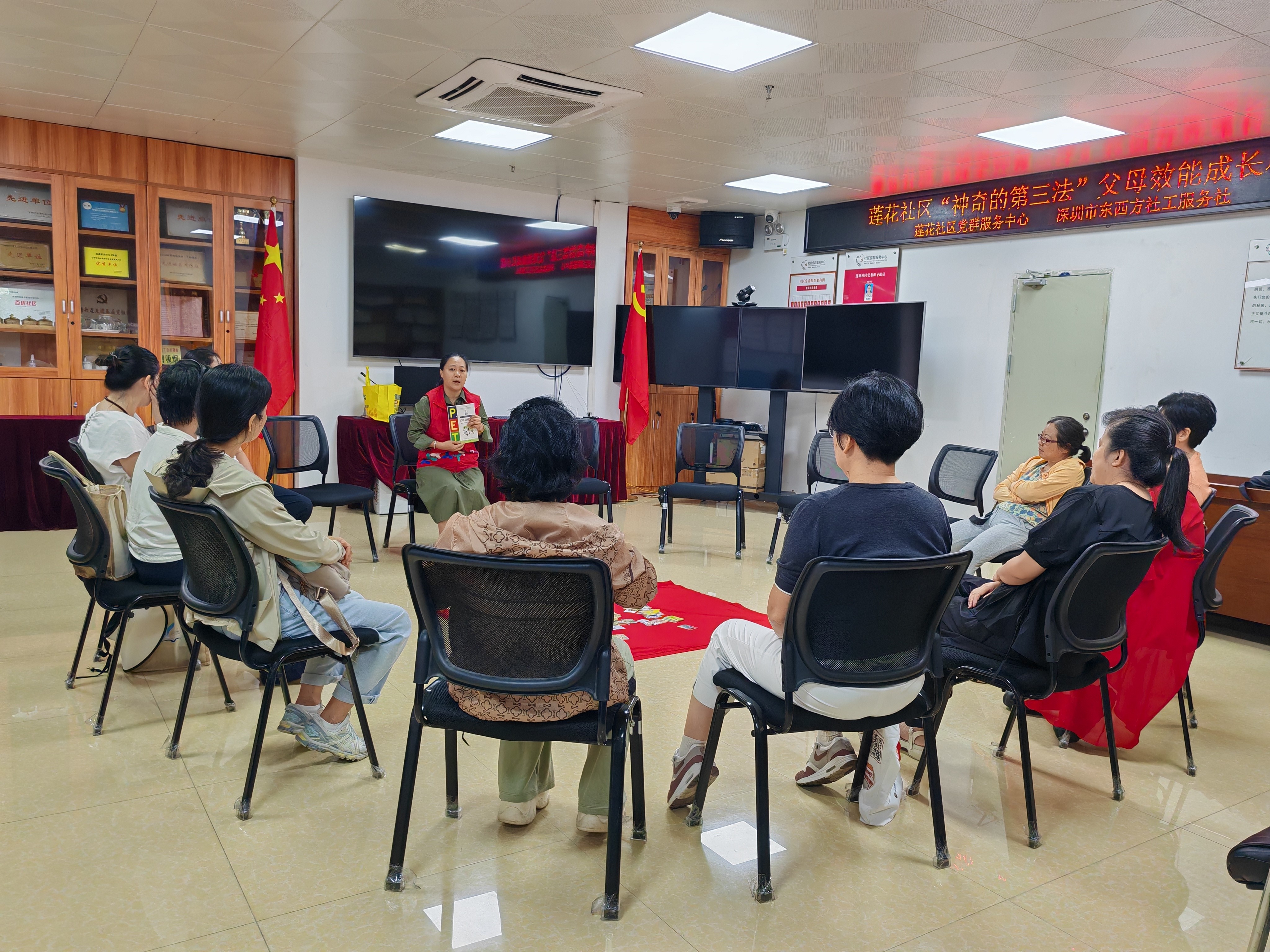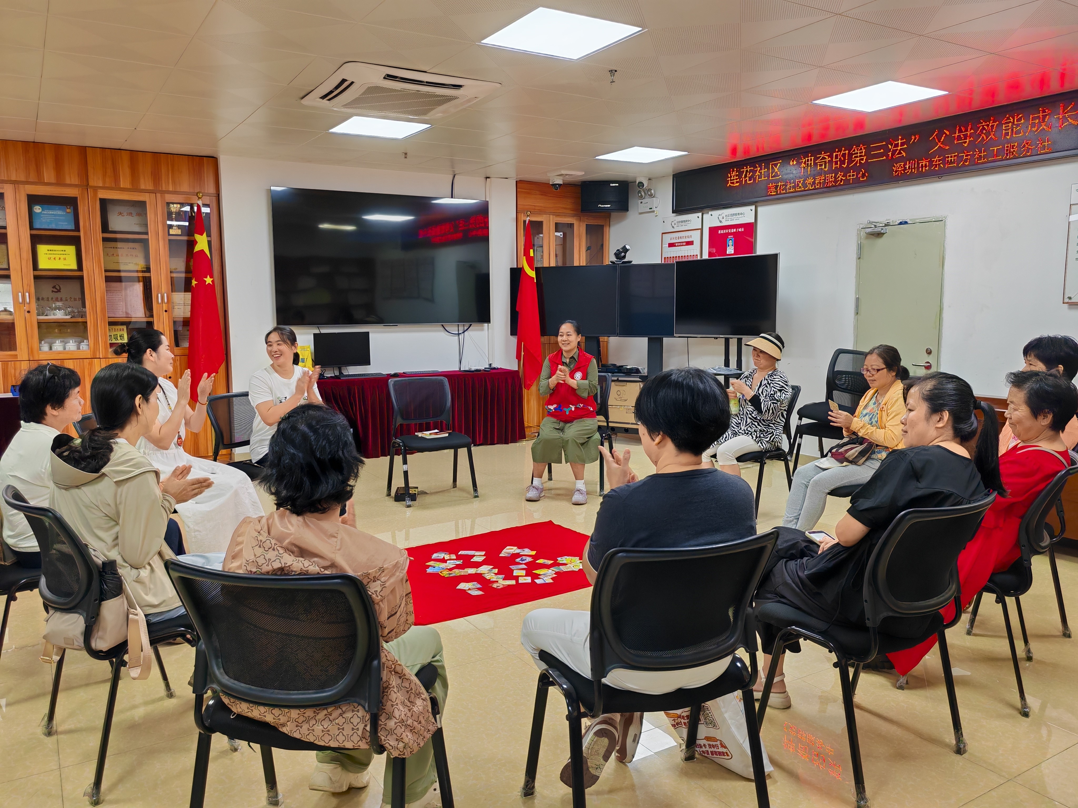 罗湖家园网讯:2025年9月4日上午,在莲花社区党委的支持下,深圳市东西方社工服务社驻莲花社区党群服务中心的社工开展了“神奇的第三法”父母效能小组首场活动。十余位满怀教育热情、渴望提升亲子沟通能力的家长准时赴约,共同开启这场旨在改善亲子关系、助力家长成长的十周探索之旅。