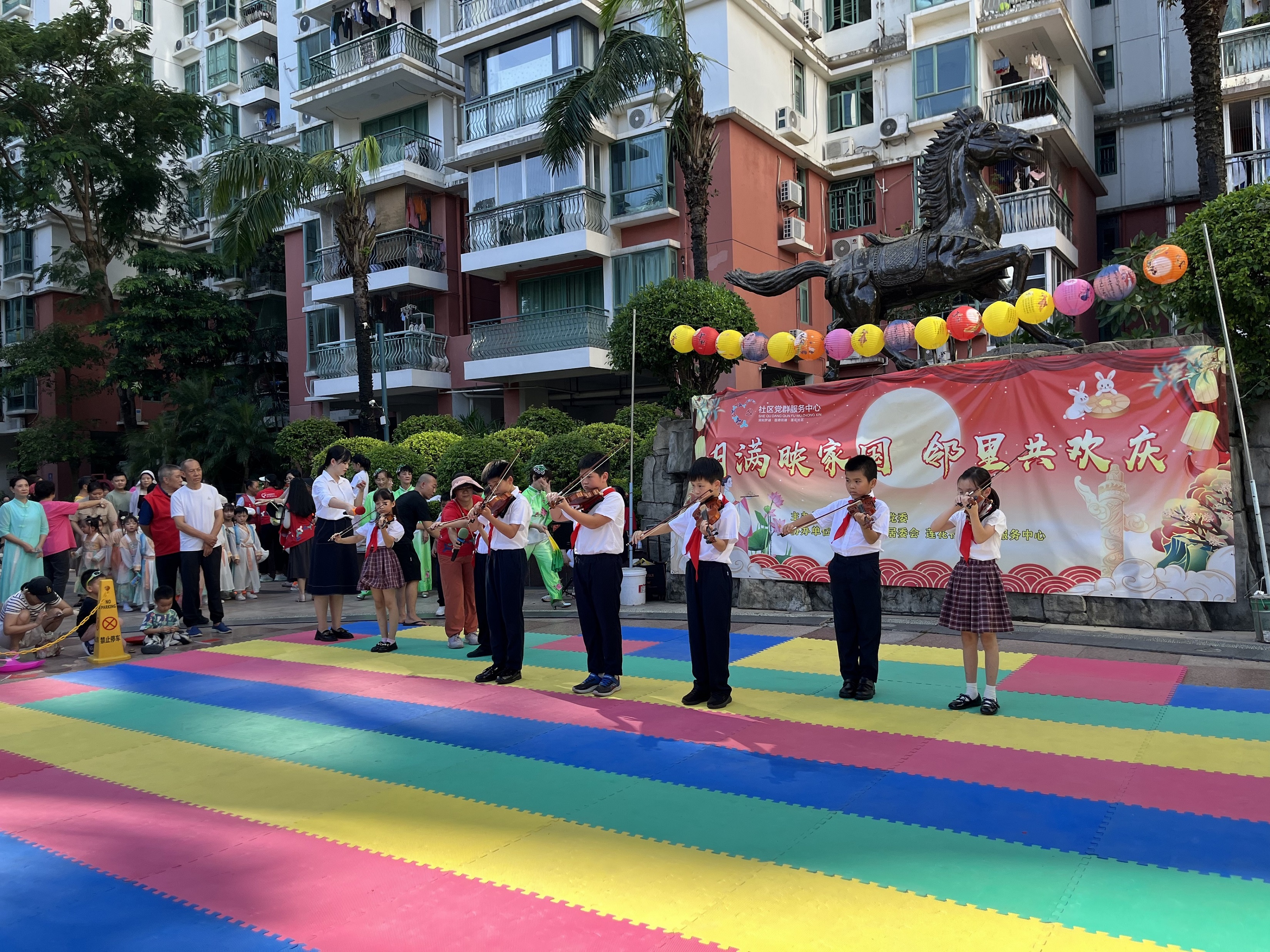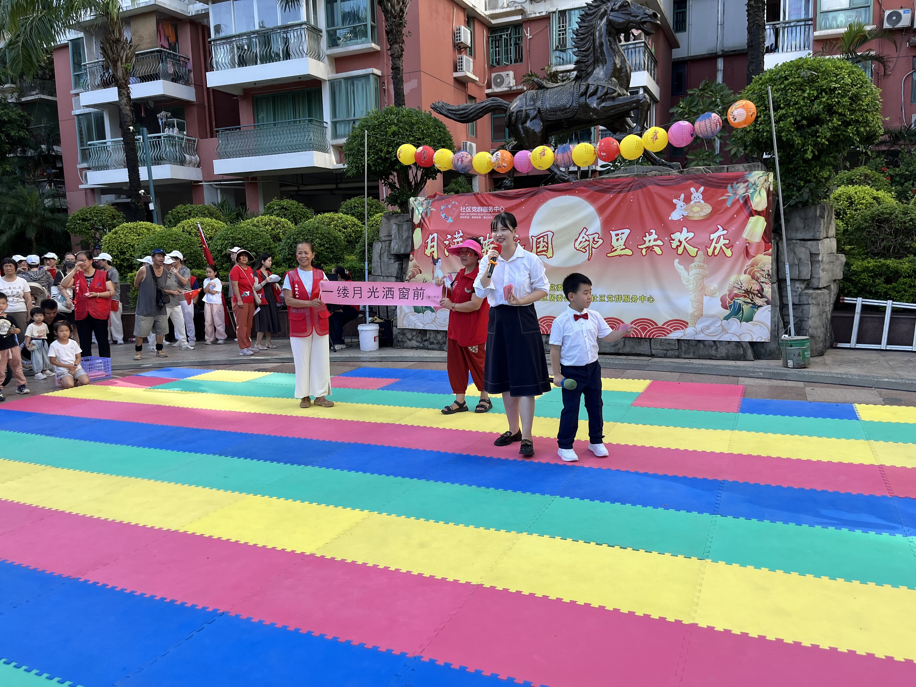 罗湖家园网讯:九月末的莲塘街道莲花社区,弥漫着浓厚的节日气氛。为充分发挥莲花社区党群服务中心的堡垒、阵地和家园作用,在中秋、国庆双节来临之际,2025年9月27日下午,莲花社区党委携手深圳市东西方社工服务社开展以“月满映家国·邻里共欢庆”为主题的文艺展演。