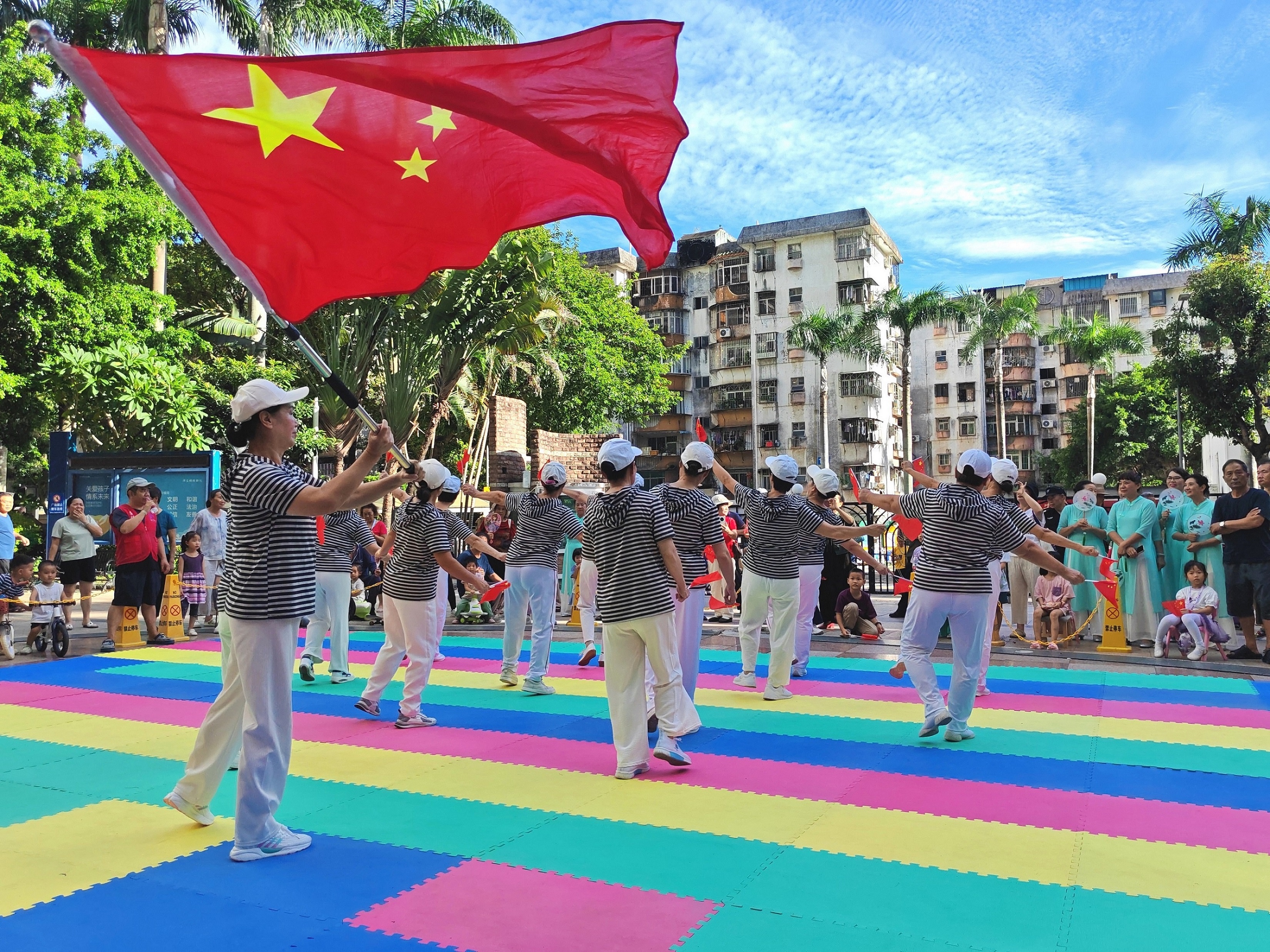 社会指导站的扇子舞《黄河源头》以流畅的动作和宏大的气势,展现了中华民族母亲河的壮阔形象。 动感舞《歌唱祖国》以欢快的节奏和活泼的编排,表达了居民对祖国的真挚情感。