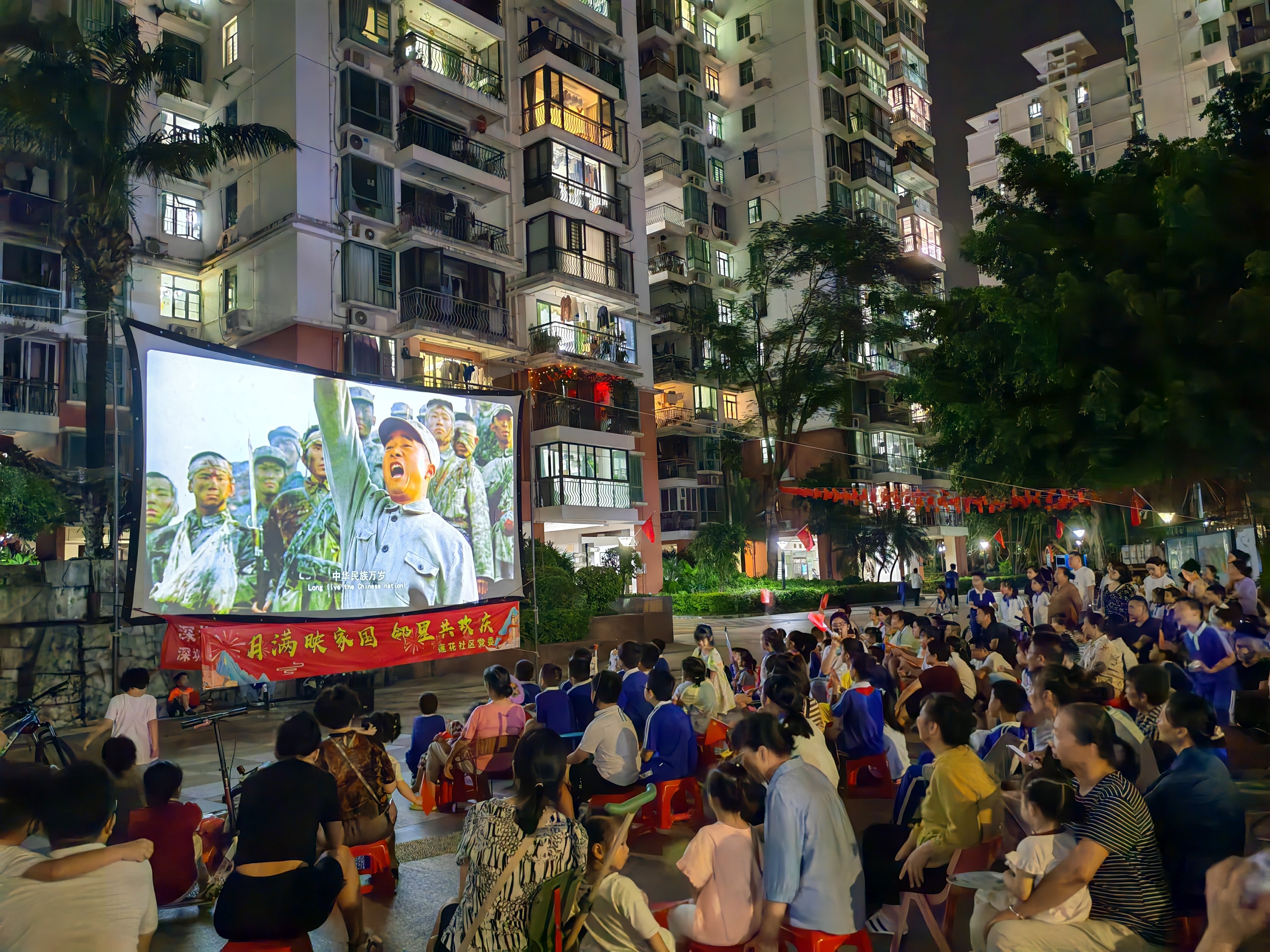 莲塘街道莲花社区开展红色电影展播活动:歌声飞扬庆双节,光影交织叙家国