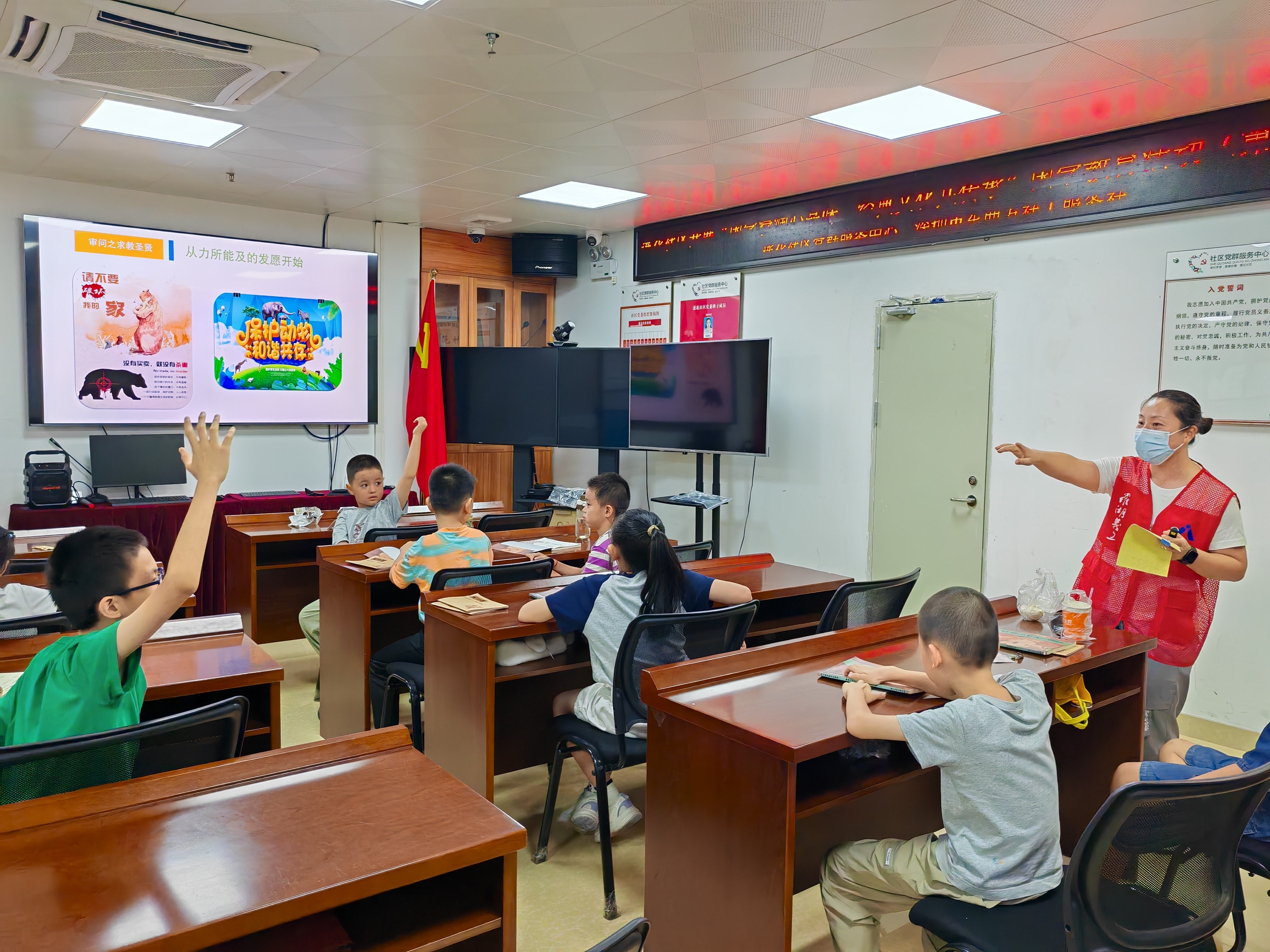 新课讲授环节,志愿者黄老师围绕“凡是人,皆须爱,天同覆,地同载”展开深入讲解。借助生动有趣的故事和形象的图片,老师引导孩子们理解这句话的深刻内涵:无论是人类,还是动物、植物,我们都应给予关怀和爱护。因为我们同处一片蓝天、一块土地,要像爱护自己一样爱护身边的一切。课程还延伸至“爱人者人恒爱之,爱物者物恒爱之”的哲理,通过一个个鲜活的案例,让孩子们懂得善待万物方能涵养仁爱之心。孩子们听得津津有味,积极与老师互动,纷纷表示要善待身边的人和自然。