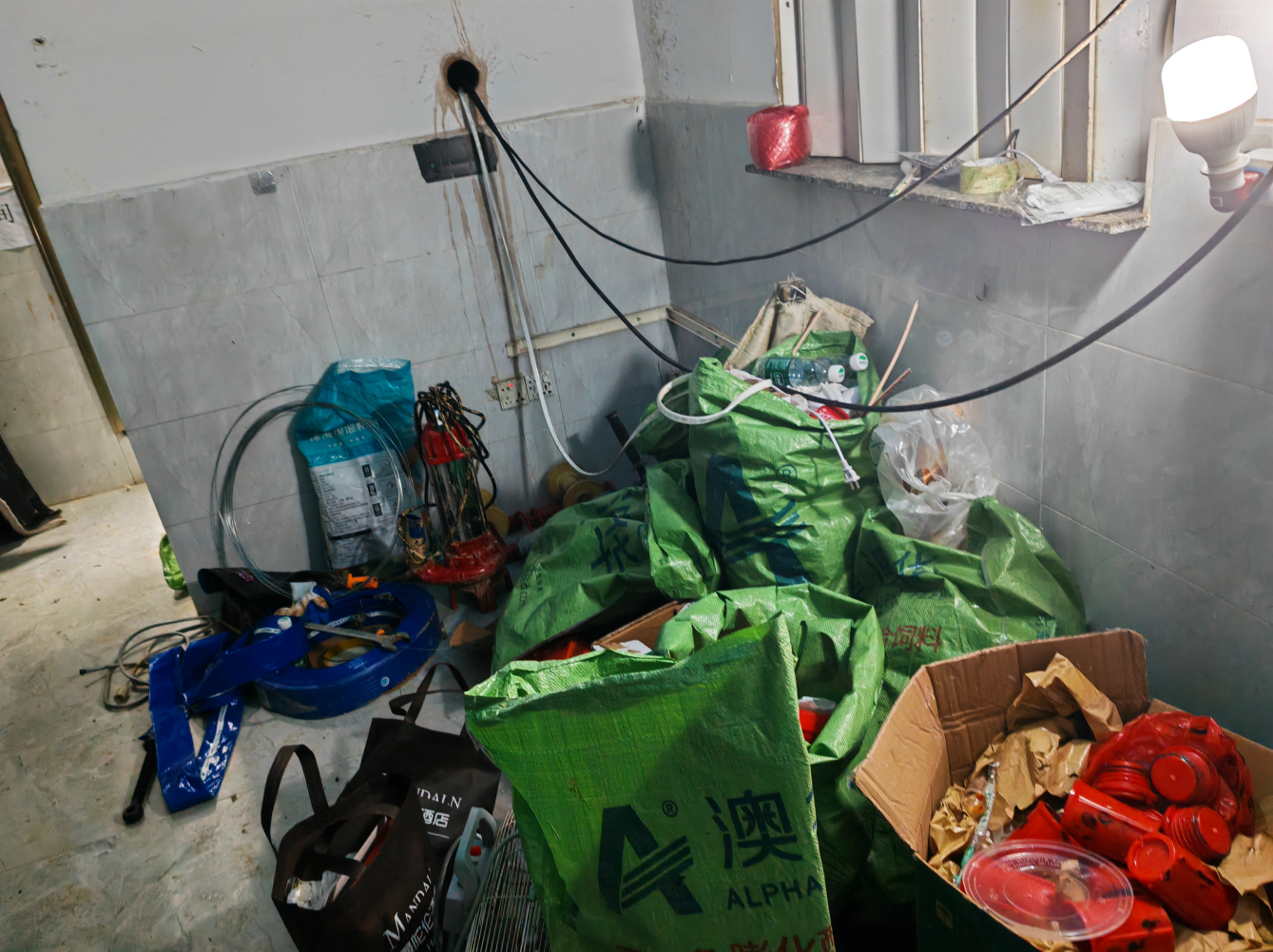 莲塘港莲村楼栋长张连波(港莲村管理处主任)巡楼时,发现港莲路13号莲塘港莲二村某栋某房有异常。紧盯该处有十来天了,在2025年9月28日上午,楼栋长张连波意外发现该房门未锁,遂推开门进去查看,随即意外(也意料之中)发现了状况:房间存在大量的水渍,水泥地板被冲击钻破开了,现场留有抽水的潜水泵及挖地道的辅助工具。楼栋长张连波敏锐意识到抓到一条大鱼!又一个利用挖地道走私的大案出现了眼前!不二话立刻拨打电话报告莲花警务室郭警长,警戒的同时又电话叫来其他楼栋长守护现场,同时报告莲花社区党委,几乎电光石火之间,这些事务在肌肉记忆般完成了!