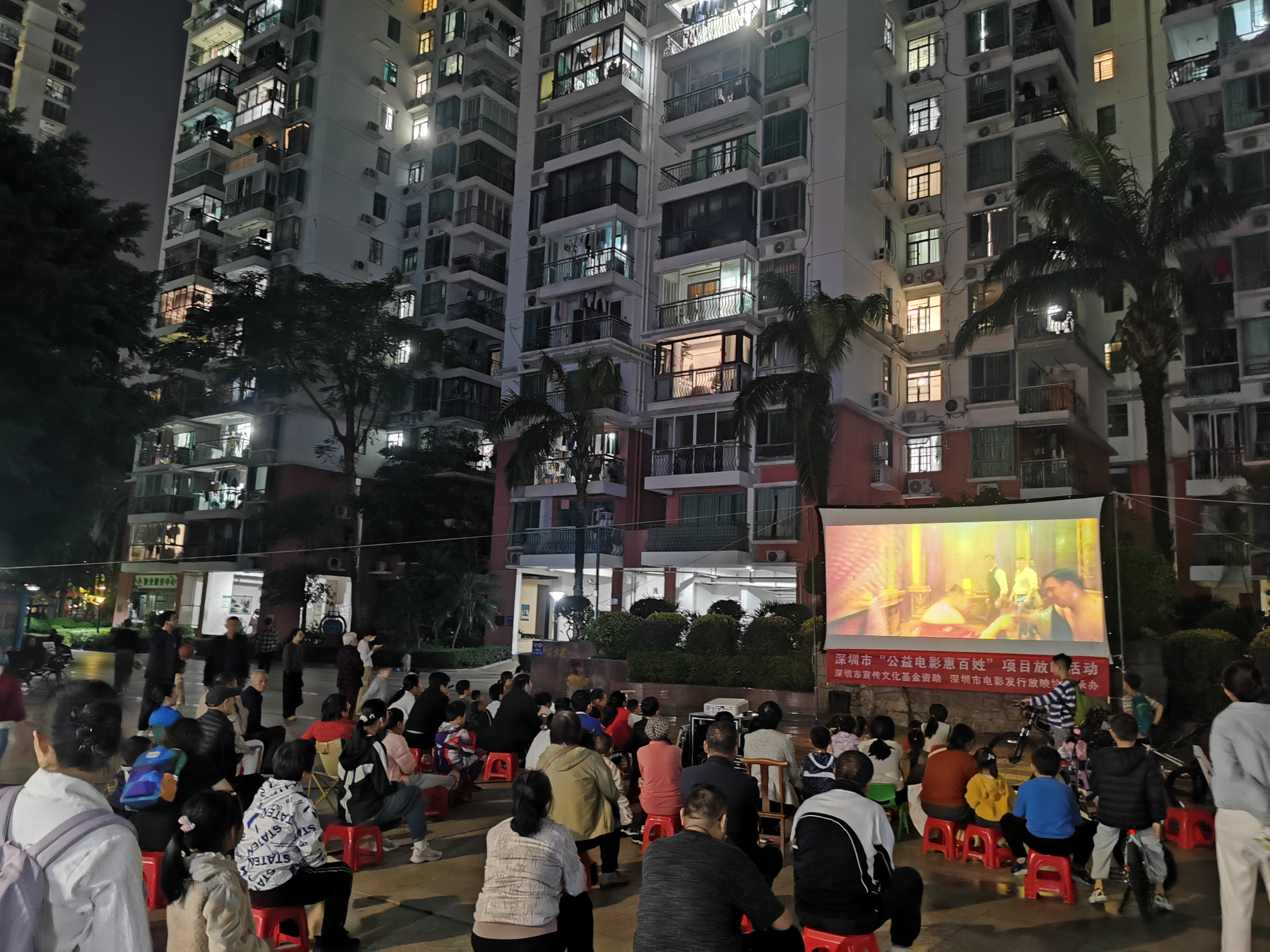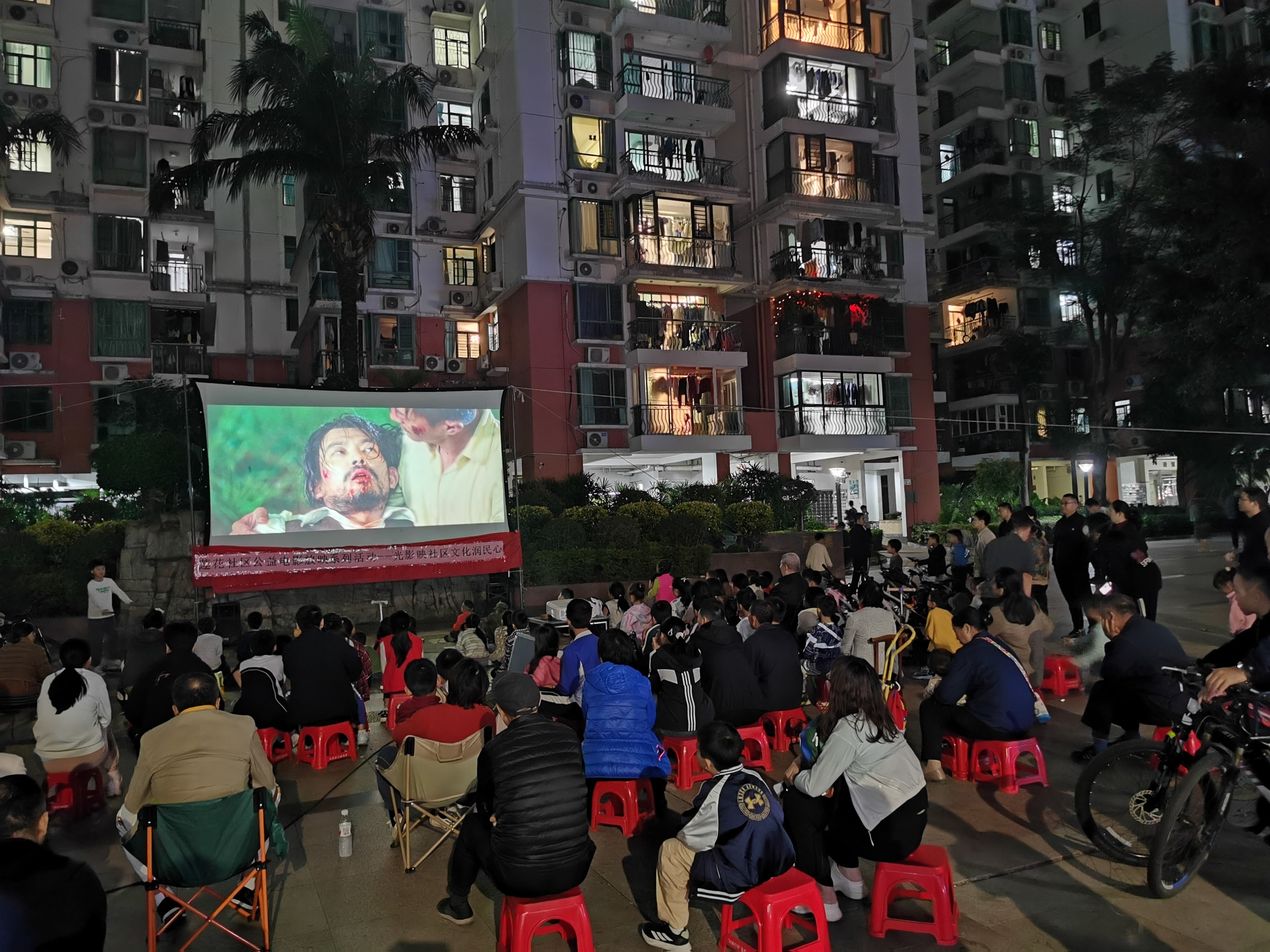 罗湖家园网讯:为铭记历史、缅怀先烈,在“纪念南京大屠杀死难者国家公祭日”来临之际,2025年12月6日晚,莲花社区党委携手深圳市东西方社工服务社在名骏豪庭小区广场开展红色观影活动。旨在通过光影的力量,让全体居民深刻铭记历史的伤痛,传承红色基因。