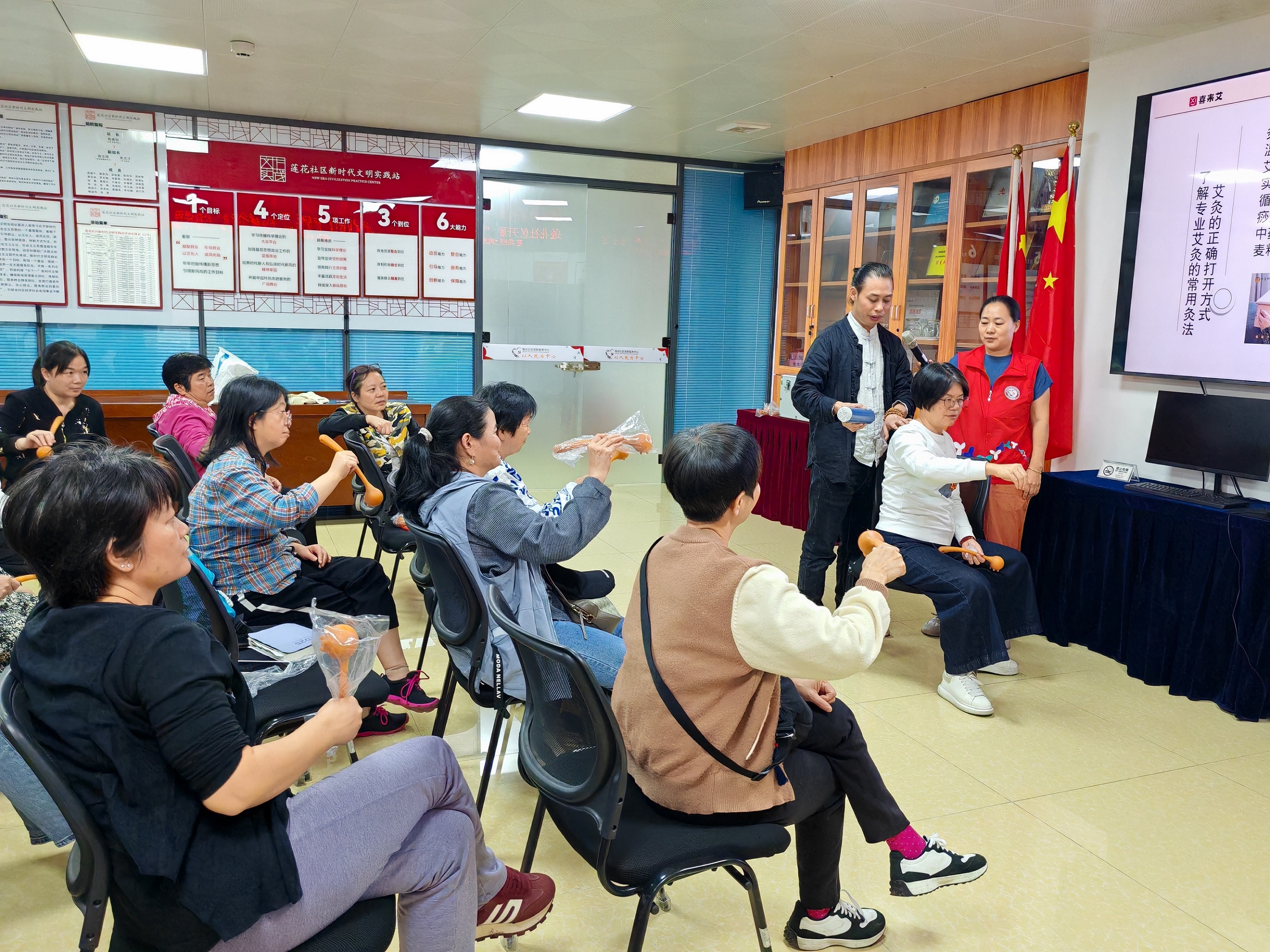 罗湖家园网讯:2025年12月9日下午,莲花社区党委携手深圳市东西方社工服务社、喜来艾,以“锤灸健康”为主题,共同打造了“中医养生之古法锤灸互助小组”公益课程。此次公益班为期37周,每周二下午准时开课,旨在通过沉浸式体验,提升社区居民健康素养,让传统养生智慧融入居民日常生活。