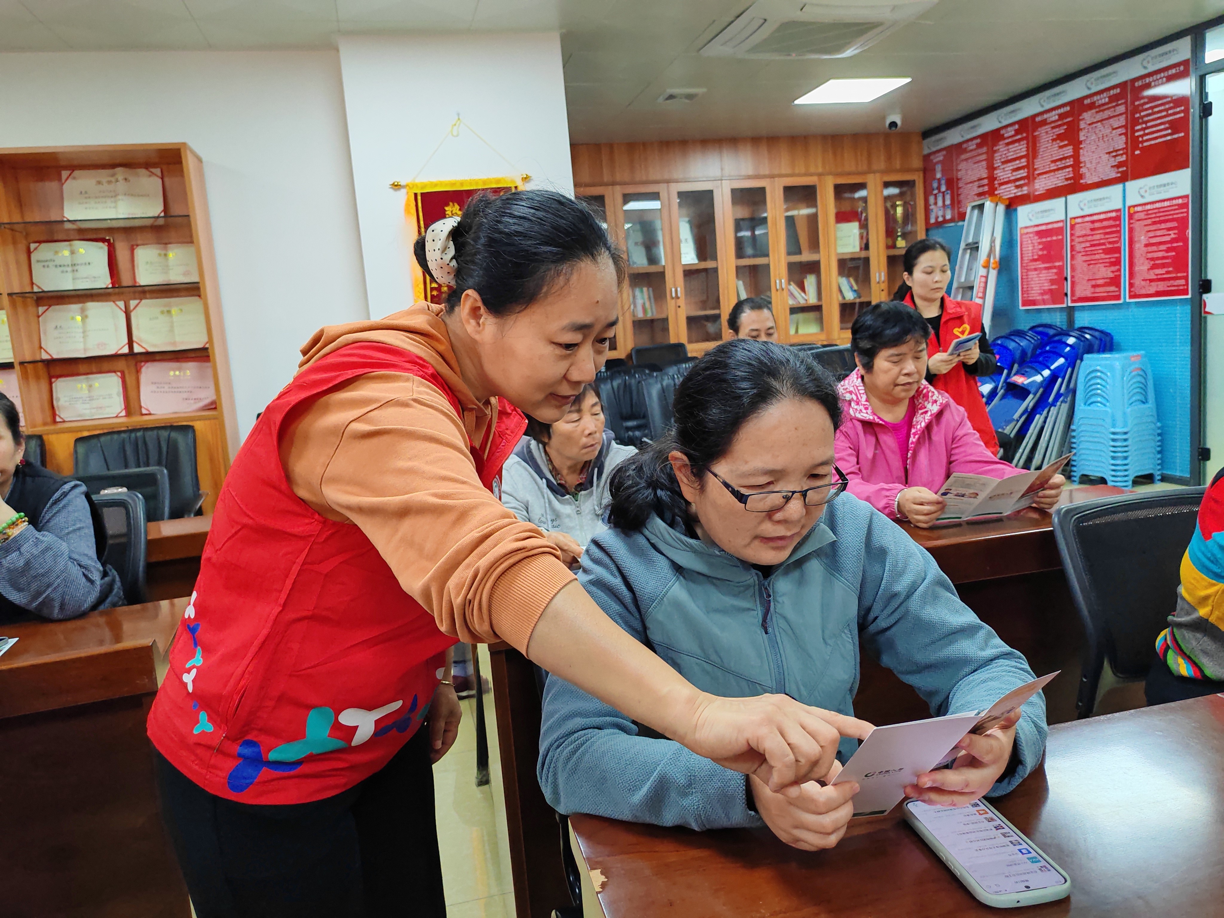 活动现场,东西方驻点社工积极行动,采用发放宣传资料、现场讲解等多样化形式,将金融安全知识送到居民身边。