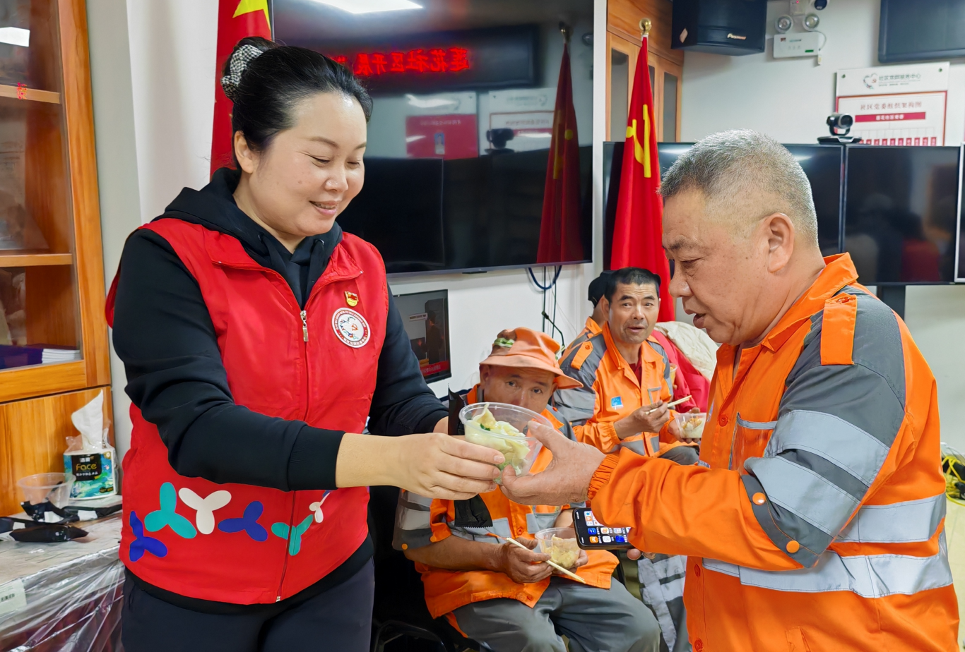 莲花社区党委书记张晓敏亲自将一碗碗热气腾腾的饺子,递到应邀前来的环卫工人手中,并送上新春的祝福。“这饺子真香!身上暖和,心里更暖和!”劳作了一天的环卫工人们吃着饺子,脸上洋溢着幸福的笑容。小小的活动室里,温情在氤氲的热气中流淌。