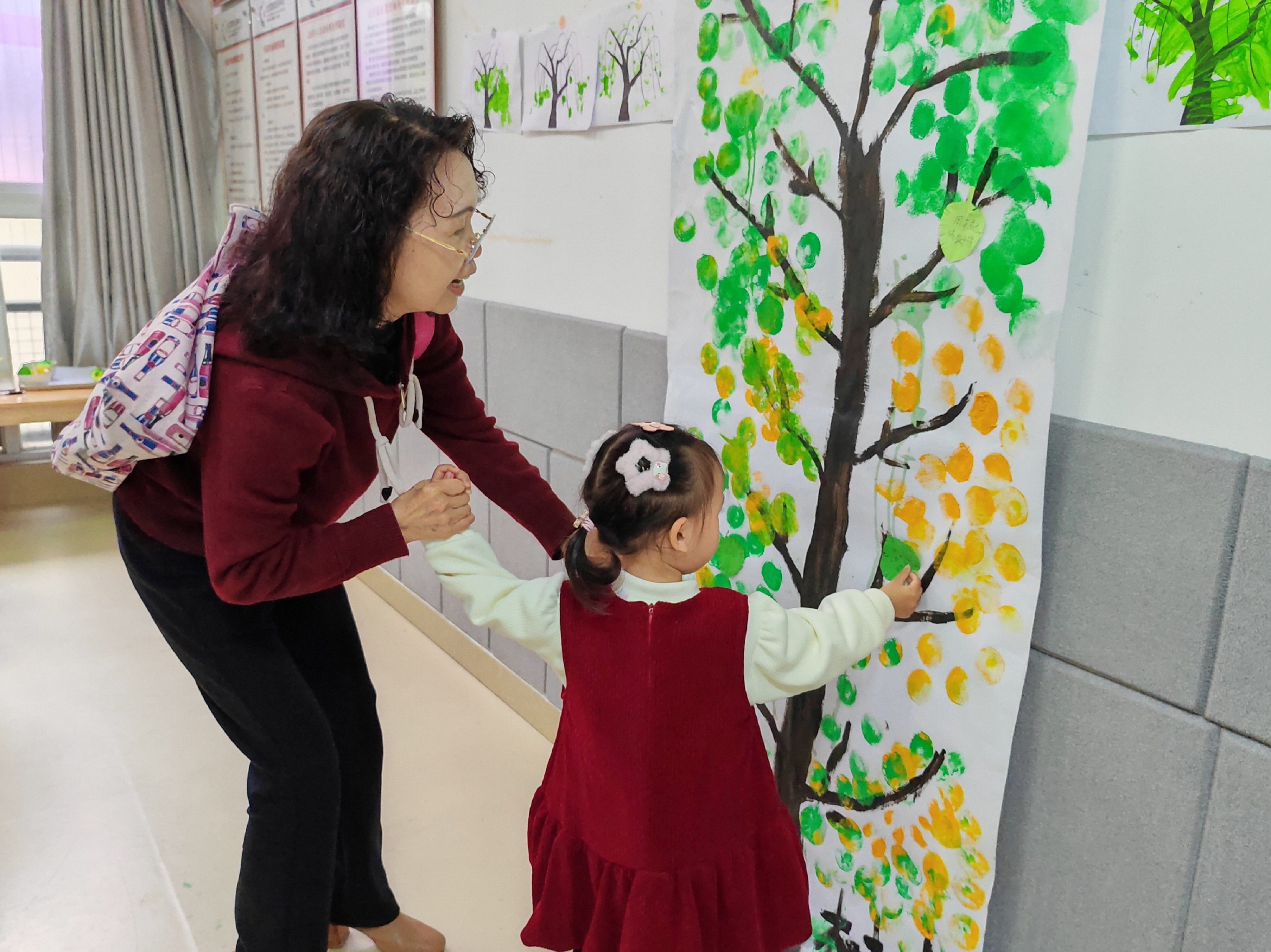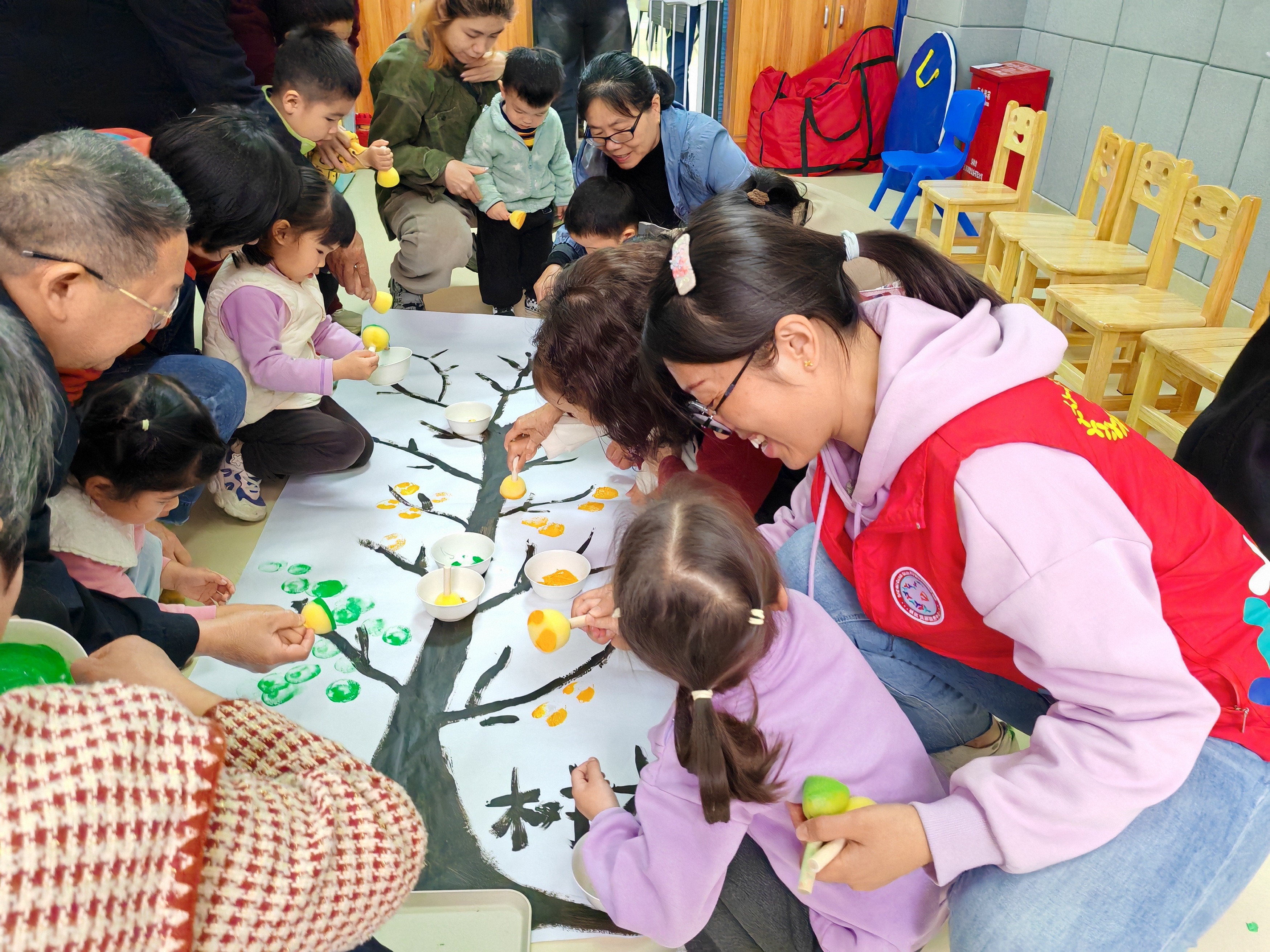 科普宣讲环节结束后,充满趣味与创意的实践环节正式开启。一些孩子在社工指导下,兴奋地拿起画笔在画布上创作。他们稚嫩的笔触充满力量,一会儿涂抹出翠绿树叶,一会儿勾勒出黄色的果实。很快,一幅幅童真又创意的小树画作诞生,饱含着孩子们对大自然的热爱和对美好环境的向往。