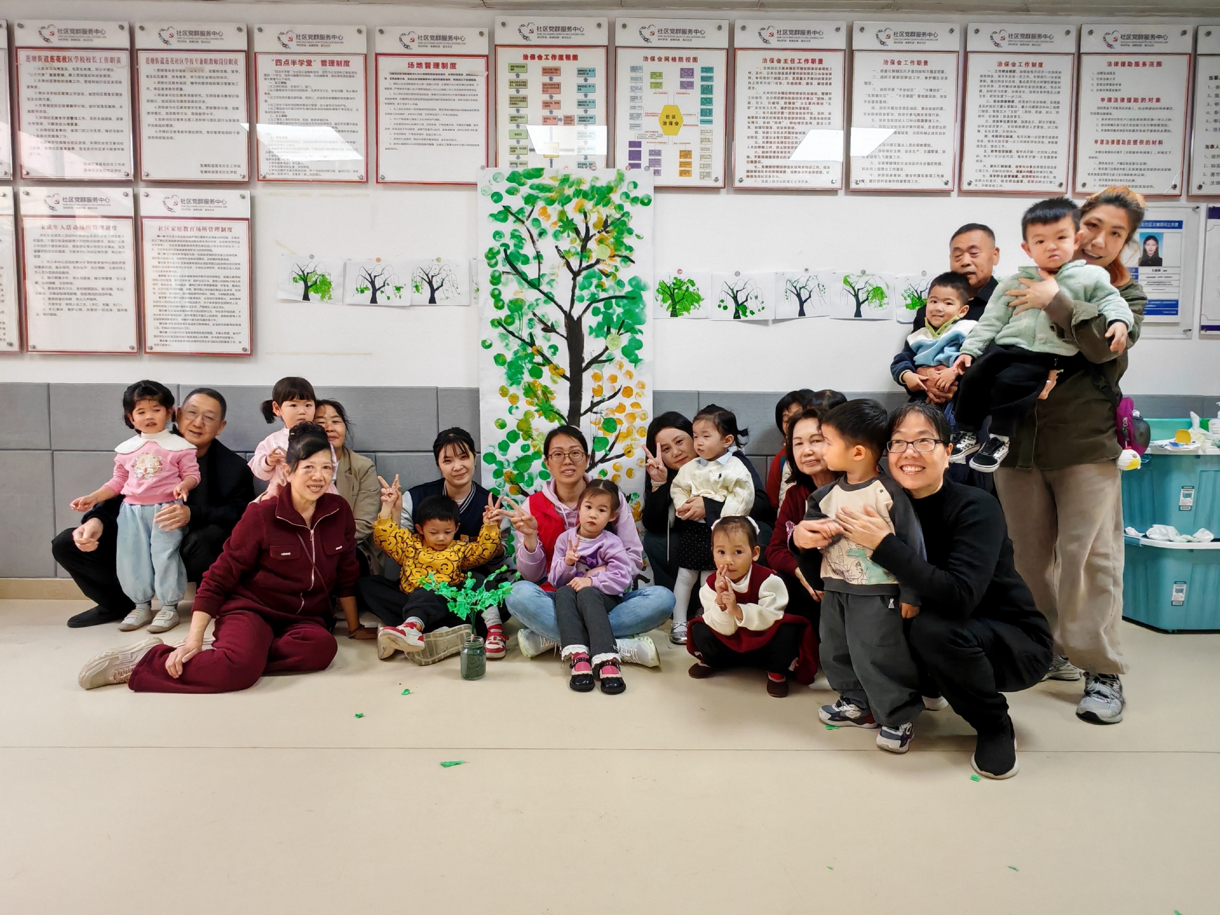 活动接近尾声,全体参与者齐聚在集体绘制的植树节画布前,脸上洋溢着灿烂的笑容,共同合影留念,将这美好的瞬间永远定格。