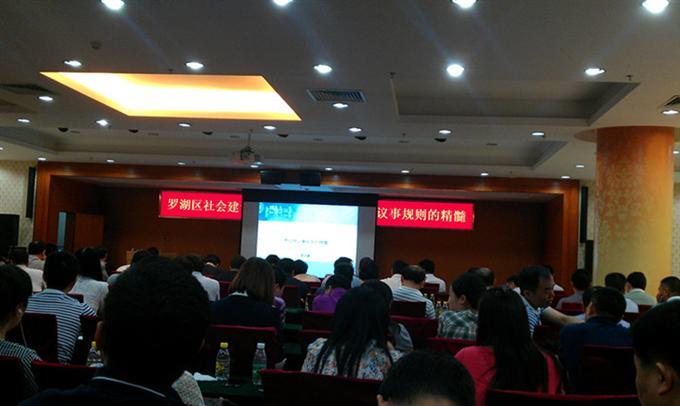 罗伯特议事规则精髓是社会建设通用的一门科学,为加强罗湖区各社区基层工作能更好的贯彻罗伯特议事规则。2013年8月7日下午2点30分在罗湖区多功能会议厅召开了罗伯特议事规则宣讲会,宣讲会邀请专家为基层干部上演了一场非常有意义的演讲。