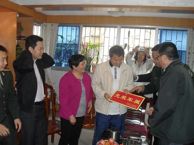 为了表示党和政府对光荣军属家庭的关心,2014年2月28日深圳市罗湖区武装部部长在莲塘街道办事处党工委副书记程建群的陪同下,由莲塘社区工作站站长唐少华带到光荣军属家庭慰问,罗湖区开装部部长表示感谢光荣军属家庭对政府工作的支持以及贡献,党和人民最需要你们的时候,你们都做到了。