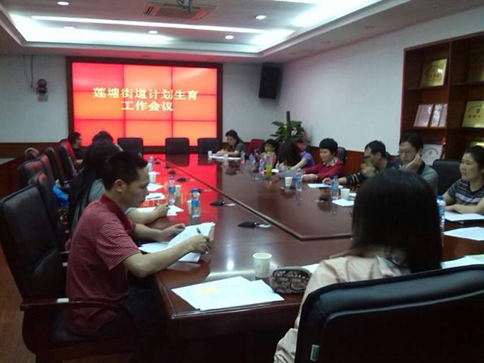 2014年5月13下午在莲塘街道办事处会议室召开计划生育工作例会。参会人员有街道计生科全部人员,各社区计生专干,会议学习了《关于2014年度省人口计生目标管理责任制考核方案》征求意见,布署日常计划生育工作,认真做好迎接2014年度半年省计划生育人口检查工作。