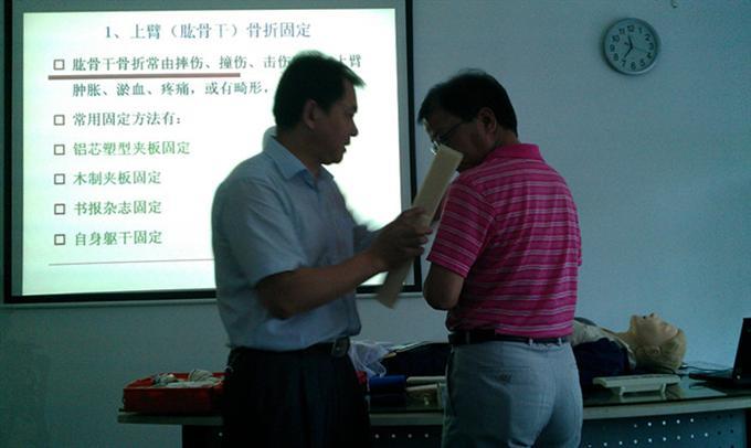 2014年5月22日莲塘社区工作站按照街道的文件要求。社区工作站派出2名工作人员前往东门深圳市知信职业培训中心进行应急救护培训。本次培训课程非常实用主要是针对出现事故的人员如何进行急救,包扎,伤口处理等方法,培训过程中老师通过现场互动试范,大大提高了同学们的动手能力,也有助于掌握急救的技巧。最后通过同学们都通过了人口呼吸的考试并颁发相关证书。