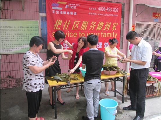 为融入社区居民的生活,莲塘社区服务中心社工于5月30号到社区中与社区居民一起分享包粽子的欢乐,让社区洋溢起端午节的气氛。