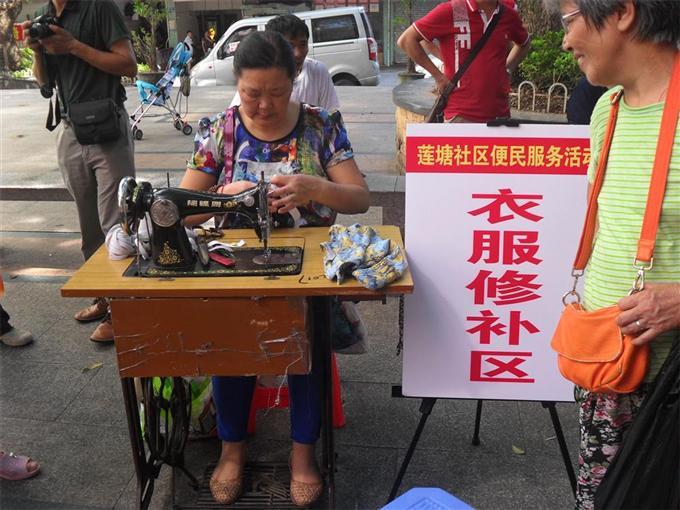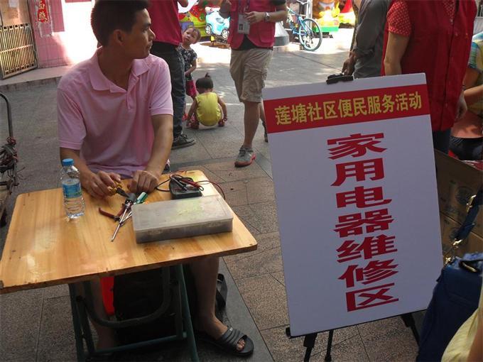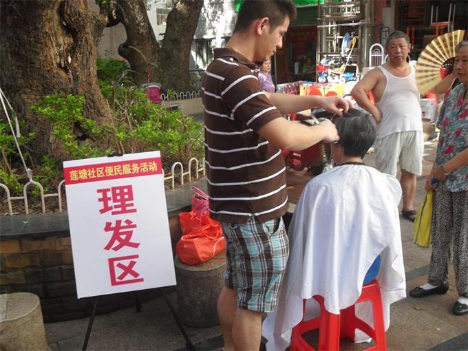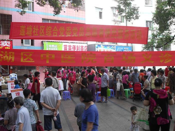 为庆祝建党93周年纪念日,莲塘社区综合党委于2014年6月27日上午在莲塘村七巷休闲广场开展了党员志愿者便民服务活动。活动中设有十几个便民服务项目,其中包括:补鞋子、理发、缝补衣服、磨刀、电器维修、计生服务、社工服务、民政事务服务、劳动保障服务、义诊服务等。活动现场吸引众多居民参加,现场为居民提供便民服务约500/人次。