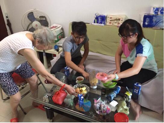 莫婆婆热情欢迎社工的到来,分享了自己生活的近况。莫婆婆说最近除了天气炎热外,其他一切都还好,还是希望有人能来与她多多聊天,有人能跟她说说话,她就很开心了。在了解近况后,社工将自己买的水果拿出来演示榨汁机的使用方法一步一步的教莫婆婆使用。