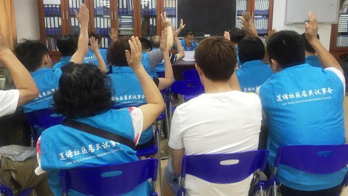 莲塘社区于2016年8月4号下午2点半在社区工作站二楼召开第四次居民议事会会议审议民生微实事项目,莲塘社区居民议事会共16名成员,此次14名成员参与了会议,符合到会人数超过三分之二的要求,会议议事结果有效。会议首先介绍了这次三项服务类必选项目的基本情况和申报资金情况,与会人员都积极提问并踊跃发表自己的意见。最后,14名议事会成员经过审议,举手表决通过《莲塘社区中秋邻里节》、《莲塘社区社会组织扶持项目》和《莲塘社区议事会规则培训》三项议案。