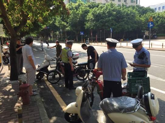 为了保障居民的出行安全,降低交通事故发生率,2016年8月11日下午,莲塘街道平安建设部联合交警、莲塘派出所以及莲塘社区工作站在莲塘社区内开展“禁摩限电”整治行动。
