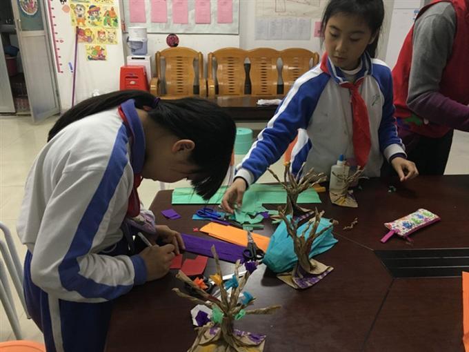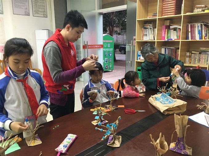 莲塘社区党委和社区服务中心于2017年3月13日组织社区青少年参与植树节主题活动,此次植树节的活动形式选择环保手工制作的方式,利用收集而来的废弃牛皮纸袋,加上手工用的皱纹纸做成一棵棵“精美”的大树。