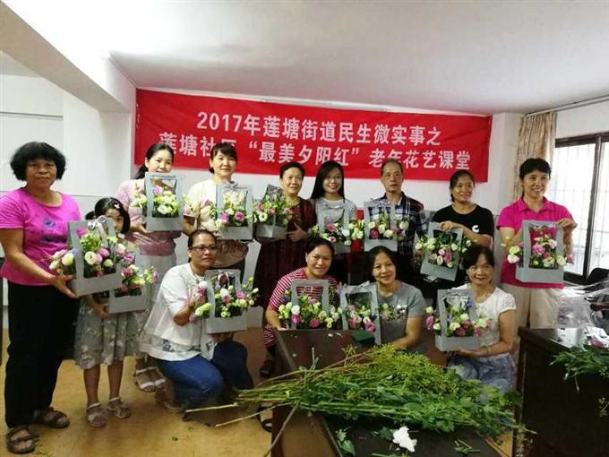 第一堂的插花课让社区老年人很满意,在他们的殷殷期待中,莲塘社区的第二堂的插花班课程又开始了。