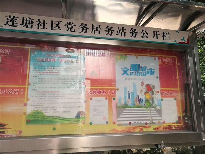 2017年9月月6日上午,莲塘社区组织工作人员在辖区宣传栏张贴了文明城市你我共建,做文明守法的罗湖人为主题的宣传海报,向居民宣传文明市民常识,以及在创建全国文明城市工作中应该做到的细节要求,引导广大居民群众在思想上达成共识,在行动上自觉参与,真正在辖区形成全民参与创城的浓厚氛围。(莲塘社区发言人:林媚)