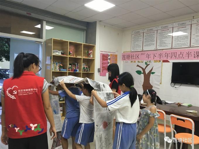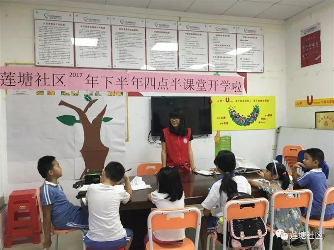 四点半课堂开设的初衷就是考虑到四点半孩子下课后大部分的家长还在上班而无暇顾及自己的孩子,孩子的课业无人辅导,也缺乏必要的课外活动;且低年级的孩子安全意识不健全,无人照看的情况下容易产生意外。这些情况都不利于儿童的学习及身心发展。为解决居民这难题,中心将整合社区资源,成立四点半学堂,为孩子们提供安全健康的免费学习场所,给孩子提供一个玩耍的场所,让孩子有伴玩,不孤单。在辅助完成课后作业的同时社工陪小朋友快乐游玩。服务中心里有课外书,小朋友在做完作业的情况下看课外书,可以增加课外知识,社工也会定期的给孩子们讲故事放映电影,家长们就可以安心的工作了。