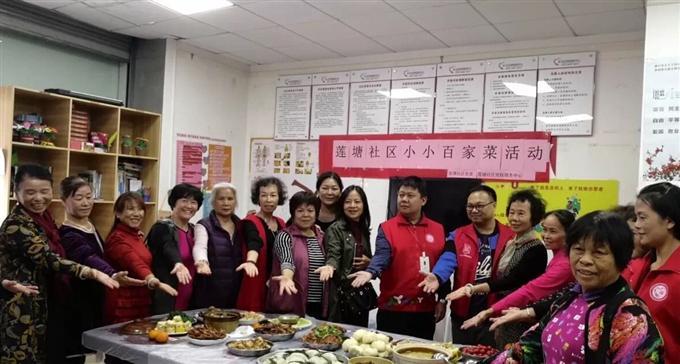 为进一步弘扬传统文化,弘扬邻里和睦,2017年11月21日下午三点,莲塘社区党群服务中心拉开了帷幕,在党群服务中心内开展了“小小百家菜”活动,此项活动是通过本地的传统美食,促进外来居民与本地居民的交流、传递社区温情,活动中有莲塘社区党委书记王建平、莲塘社区第一支部书记邓进强及莲塘社区党群服务中心工作人员、辖区居民参加,活动结束后还与社区居民们合影留念,场面十分热闹。(莲塘发言人:张丽梅)