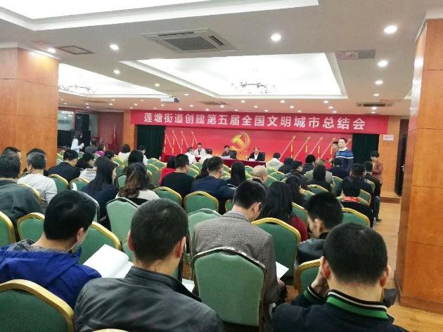 在上级部门的正确领导下,莲塘辖区各单位深入地开展创建第五届全国文明城市工作,城区的文明程度、市民文明素质有了显著提升,市容市貌环境亮丽一新,有力地促进了莲塘辖区社会经济的健康发展。2018年1月4日,在莲塘街道办事处A会议室召开了“莲塘街道创建第五届全国文明城市总结会”。