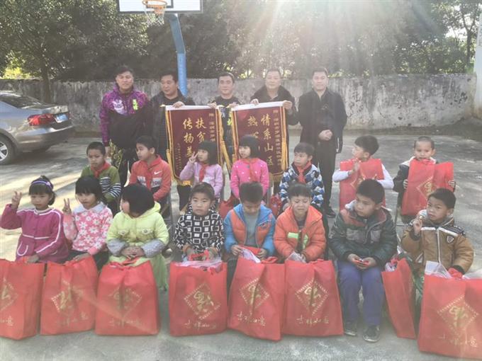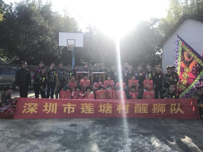 莲塘村醒狮队队员们每人自发捐款300或500元,共9300元,并向山区贫困儿童赠送学习用品、运动器材以及醒狮队的慰问演出。