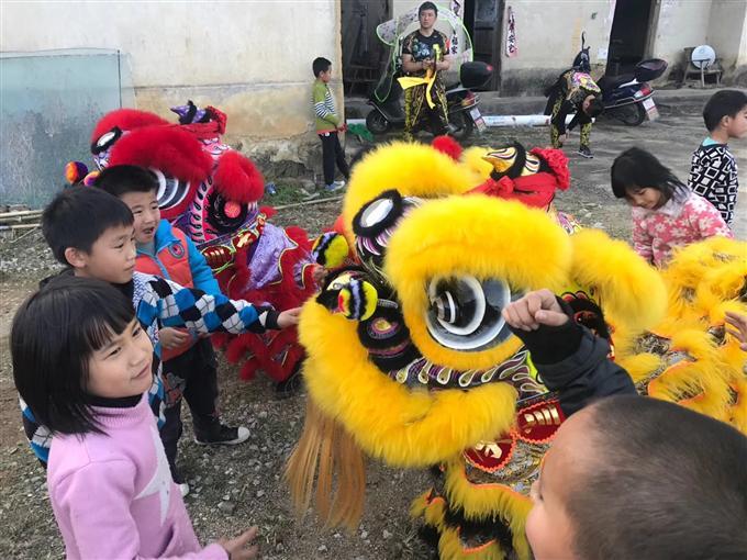2018年1月11日(星期四)下午,莲塘社区工作站站长与莲塘村醒狮队25名队员走出莲塘,到惠州龙门县沙迳镇到滩小学慰问留守儿童。