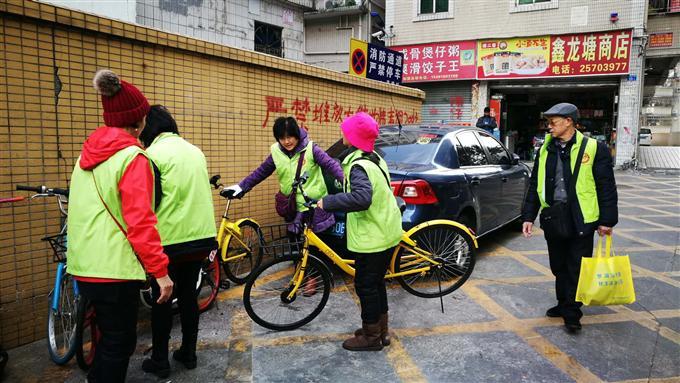 2018年2月1日上午,今天上午气温很低,但却一点都不影响我们莲塘社区老协义工们的暖日活动。临近农历新年,社区内多了一些共享单车在巷道中间和一些虚假广告张贴,严重影响行人出入,容易误导初来深圳的人或者来深带孙的老人家。为此,莲塘社区老协的沈会长、郭副会长带着老协的一班干事在社区中进行清理小广告的行动,将路中间的共享单车摆放整齐,大家不畏寒冷,尽自己所能为社区服务,给大家一个干净整齐的社区生活共同努力。( 莲塘社区发言人:李淑琳)