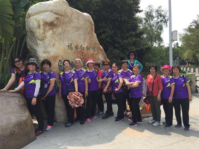参加活动的会员们穿着色彩缤纷艳丽的队装,大家先在欢乐海岸的中影城集合,然后井然有序地开始健步走,一路上大家谈笑风生,一边欣赏海滨公园的自然美景一边畅谈着各自健身锻炼的心得。