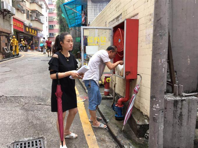 2018年6月14日上午,莲塘社区安全专干到辖区各管理处派发《百日安全生产专项整治行动检查工作的通知》,在经过莲塘村六巷的村道进行消防安全巡查时,发现该处的消防栓出现漏水的问题,她立即打电话联系维修师傅,并督促师傅完成维修以后进行检查,确认无误后才离开现场。(莲塘社区发言人 郭鸽)