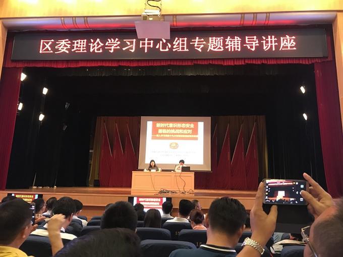 为做好罗湖区各街道全体干部意识形态教育引导工作,落实意识形态工作责任制的部署和要求,2018年8月21日上午,罗湖区委邀请中国社科院国家文化安全与意识形式建设研究中心副主任兼秘书长朱继东为街道全体干部做了“新时代意识形态安全面临的挑战和应对—深入学习党的十九大对意识形态的有关论述”专题讲座。
