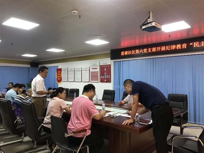 为切实贯彻落实党的十九大精神和习近平新时代中国特色社会主义思想,坚决贯彻党的理论和路线方针政策,深入推进党风廉政建设。2018年9月7日上午,在莲塘社区党群服务中心新时代讲习所,莲塘社区第六党支部组织党员开展“纪律教育学习月”活动。(莲塘社区发言人 郭鸽)