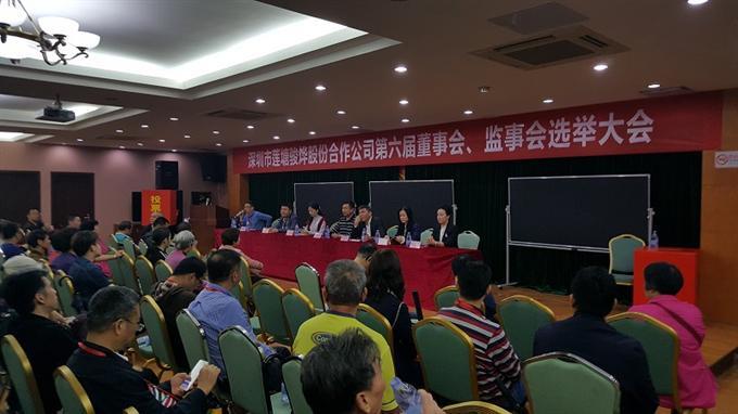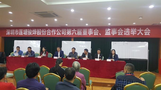 2018年11月25日下午1:00深圳市莲塘骏烨股份合作公司第六届换届选举股东代表大会在莲塘街道办事处A会议室举行,由莲塘街道领导班子成员、社区党委、股份合作公司负责人、全体股民及相关部门参加会议。