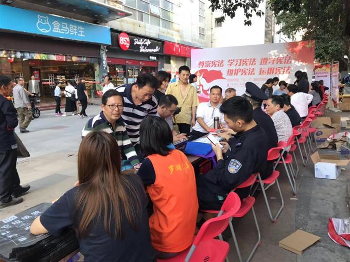 为推动全社区形成崇尚宪法、维护宪法权威的观念,宣传党的十九大精神,深入推进法治建设,营造更加浓厚的法治氛围。2018年12月4日下午,莲塘社区驻点团队在街道调研员吴征衣的带领下,来到莲塘岁宝广场开展“12.4”国家宪法日宣传活动。