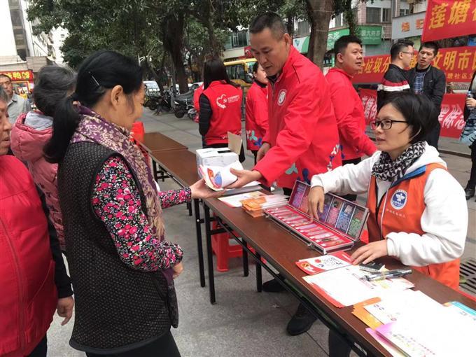 2018年12月11日下午3点,莲塘社区驻点团队在岁宝百货广场开展接访日活动,禁毒社工悬挂横幅,开展扫黑除恶,禁毒宣传。