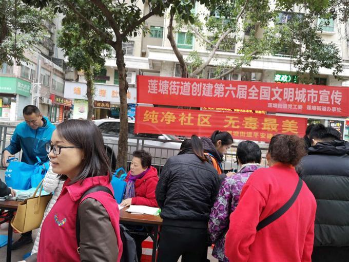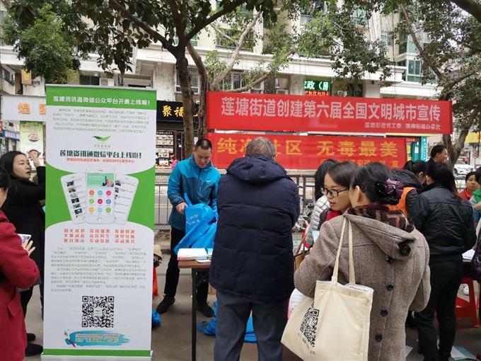为了提升市民的文明素质、城市的文明程度、城市的文化品位,提高群众的生活质量,建设崇德向善、文化厚重、和谐宜居、人民满意的城市。2018年12月13日下午,在莲塘岁宝百货广场举办莲塘街道创建第六届全国文明城市宣传活动,该活动由莲塘街道党工委主办,莲塘社区协办。
