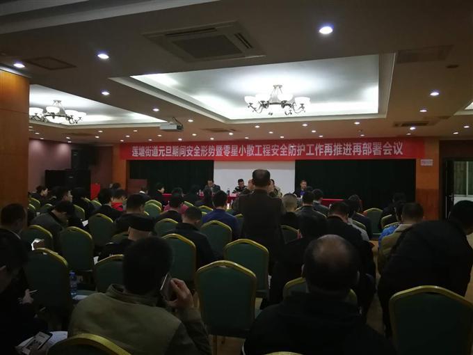 为做好元旦期间安全生产工作,进一步加强零星小散工程的安全防护工作,2018年12月29日下午,在莲塘街道A会议室召开元旦期间安全形势暨零星小散工程安全防护工作再推进再部署会议。莲塘街道及社区安全工作人员和有关单位参加了会议。