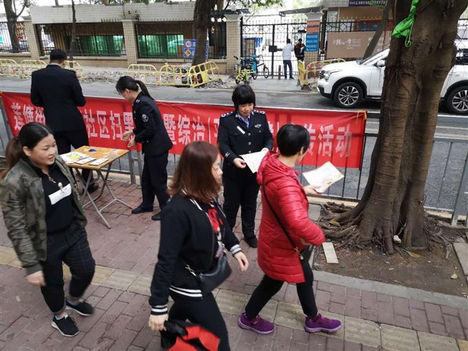 活动中,社区网格员向过往居民派发扫黑除恶宣传单,宣传扫黑除恶专项行动,提升了社区群众对扫黑除恶专项斗争的关注度和参与度。(莲塘社区发言人 郭鸽)
