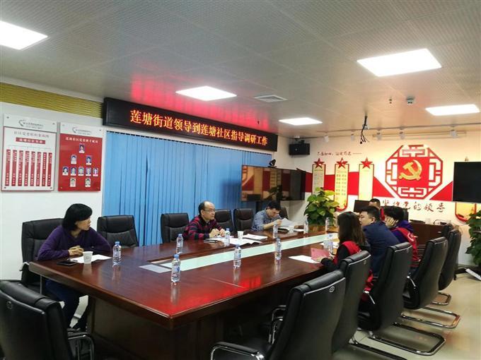 2019年2月28日上午,莲塘街道领导陈新辉、陈建平一行前来莲塘社区指导调研工作。莲塘社区王建平与负责民生微实事和社区社工团队的同事一起就相关工作向街道领导作了详细汇报。