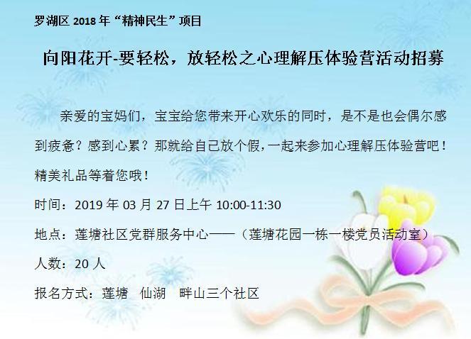 罗湖区2018年“精神民生”项目-向阳花开-要轻松,放轻松之心理解压体验营活动招募