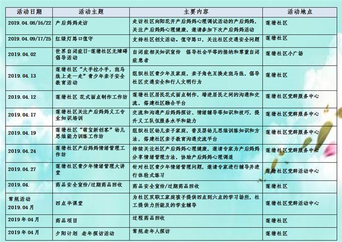 莲塘社区2019年4月活动预告