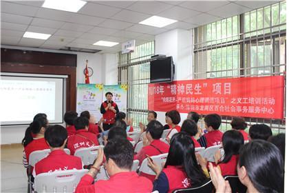 2019年4月17日上午, 30名红马甲齐聚一堂,罗湖区2018“精神民生”向阳花开—产后妈妈心理调适项目义工培训在莲塘、畔山和仙湖三个社区党委的大力支持下如期开展。